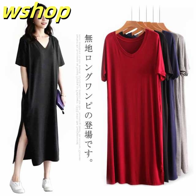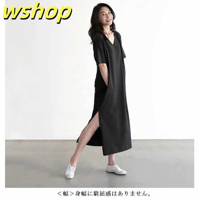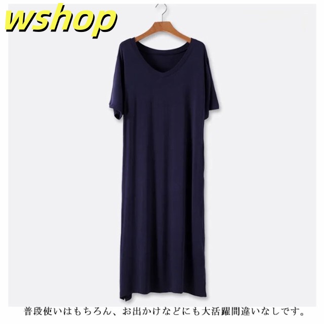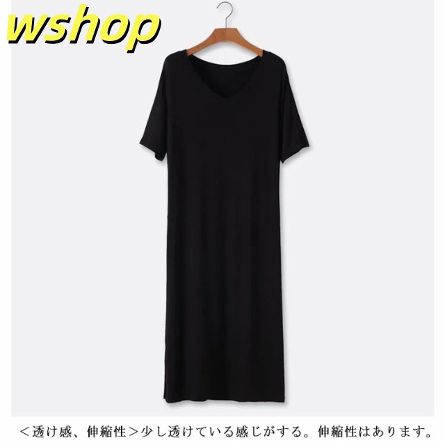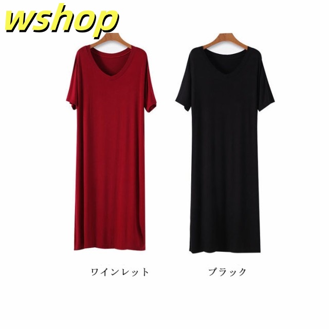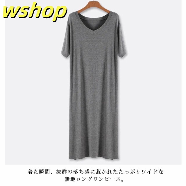 在庫限りの大特価 品質安心 【wshop ゆったり カットソー ロングTシャツ Tシャツワンピース 半袖 送料無料 無地 シンプル レディース ワンピース 大きいサイズ 】(送料無料) ルームウェア 軽量仕様 SNS話題 インナー ミディアム 数量限定入荷