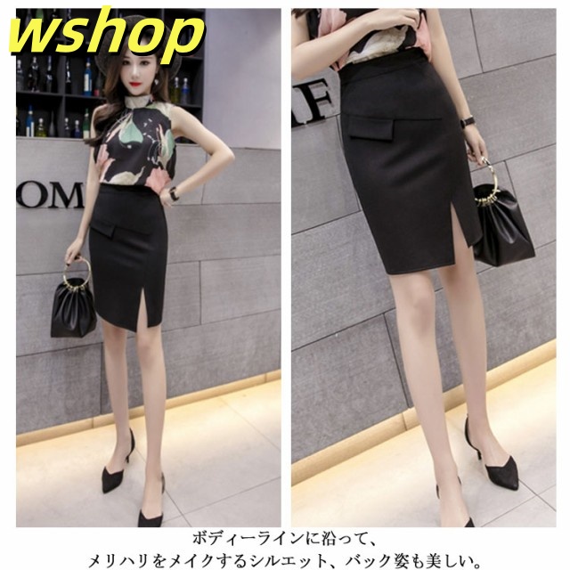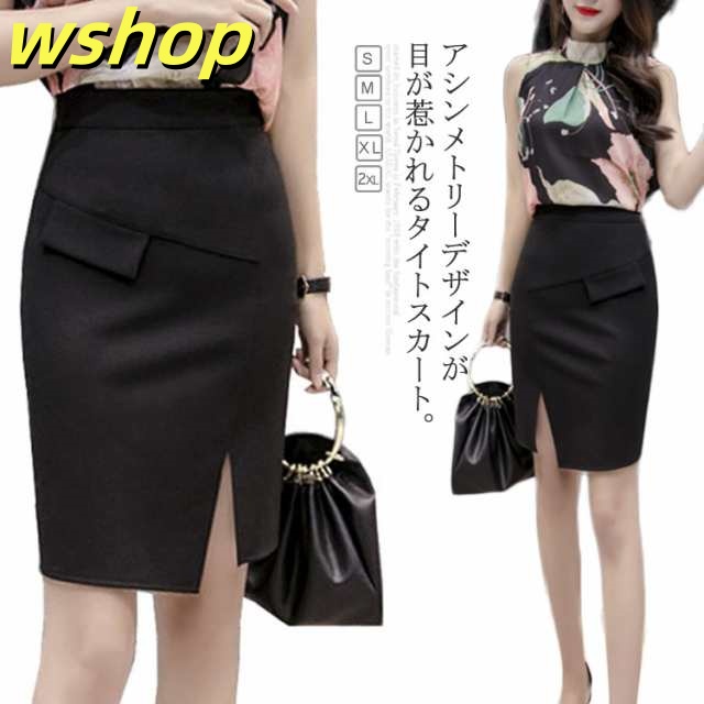 レビュー高評価商品 ギフトにも最適 スカート アシンメトリー 【wshop タイト 夏 】タイトスカート 着痩せ ハイウェスト 膝丈 軽量仕様 肌見せ 今だけ オフィス送料無料 フェミニン スリット入り セクシー レディース スリム ショート丈 ランキング常連 即納対応中