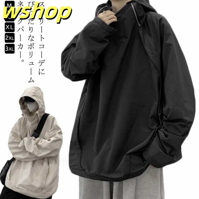 裏起毛・裏起毛なし パーカー メンズ ボリュームネック プルオーバー パーカー 撥水 防水 マウンテンパーカー トップス フード付き 送料無料 ハイネック 長袖 オーバーサイズ ビッグシルエットパーカー 大きいサイズ ゆったり カジュアル ストリート 春 秋 冬 男女兼用