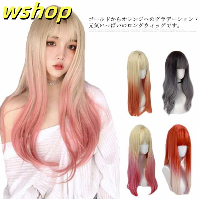 新登場 ランキング常連 ファッション ストレート 小顔効果 フルウィッグ おしゃれ オールウィッグ レディース 【wshop カラーリング オレンジ カール ロング グラデーション 】つけ毛 毛染 スケバング 自然 金 ツートン イメージチェンジ トレンド 抜け感 今だけ限定