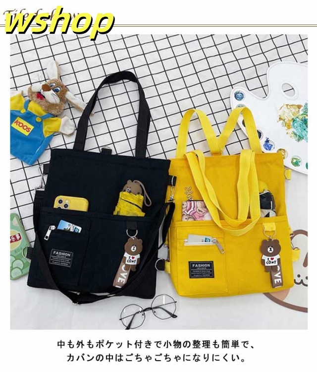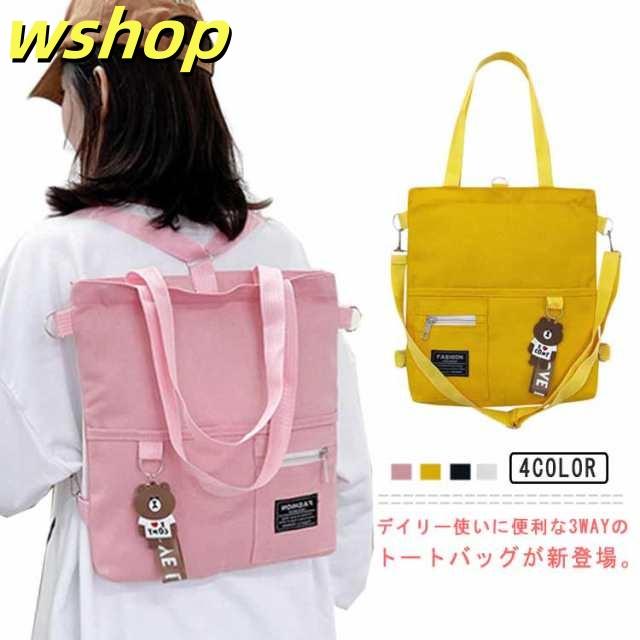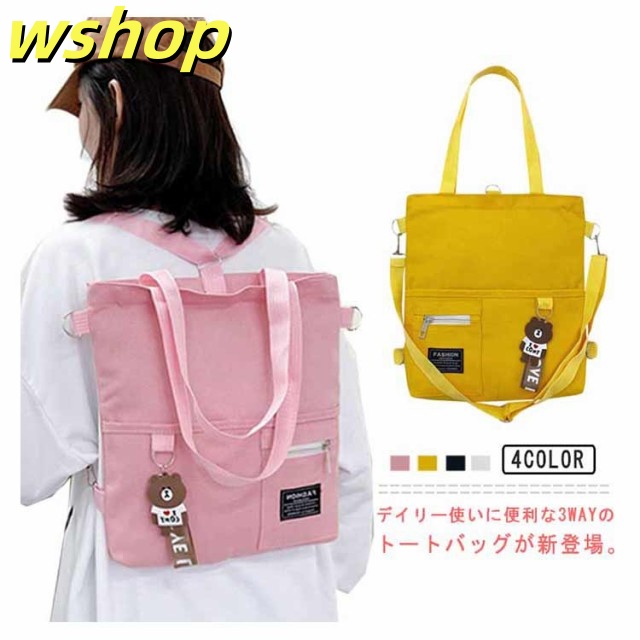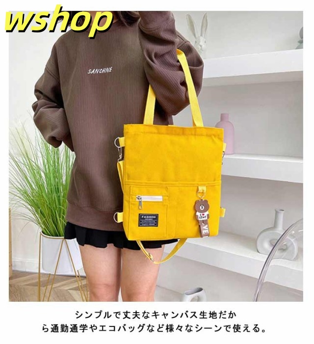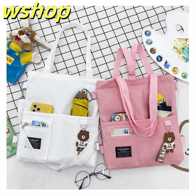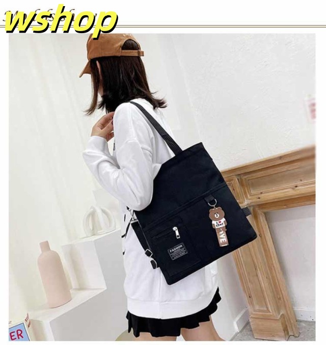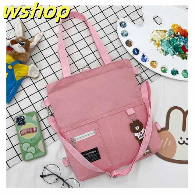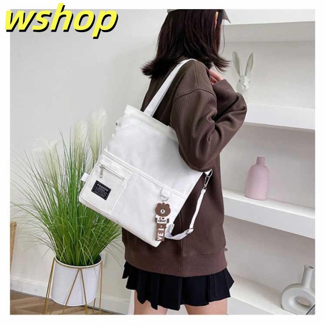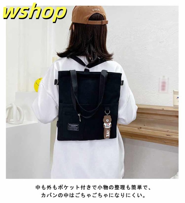 【wshop 】送料無料 キャンバス トートバッグ 大容量 3way 斜め掛け ショルダーバッグ シンプル レディース キャンバスバッグ エコバッグ 女性 鞄 大きめ a4 リュックサック 学生 大人 ファスナー ポケット 肩掛けカバン バッグ 鞄 無地 プレゼント