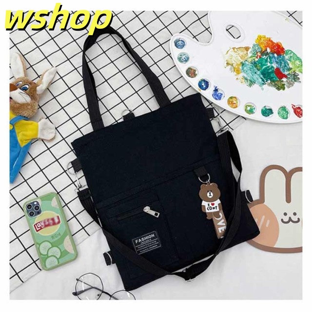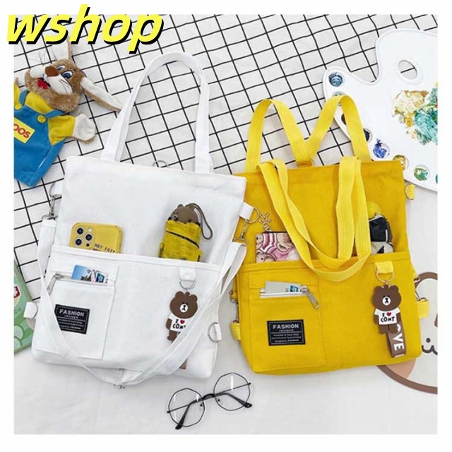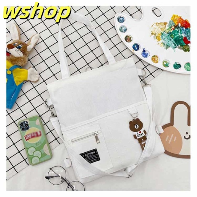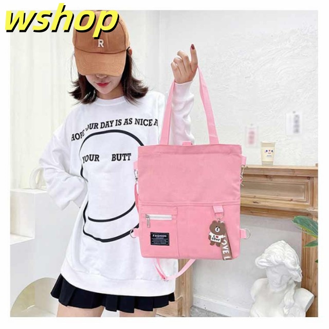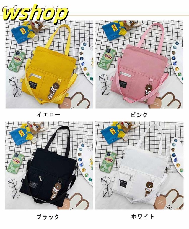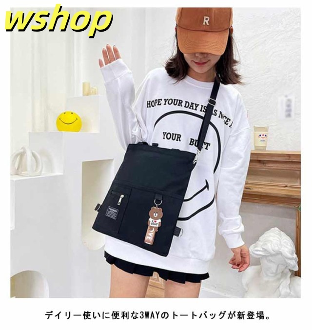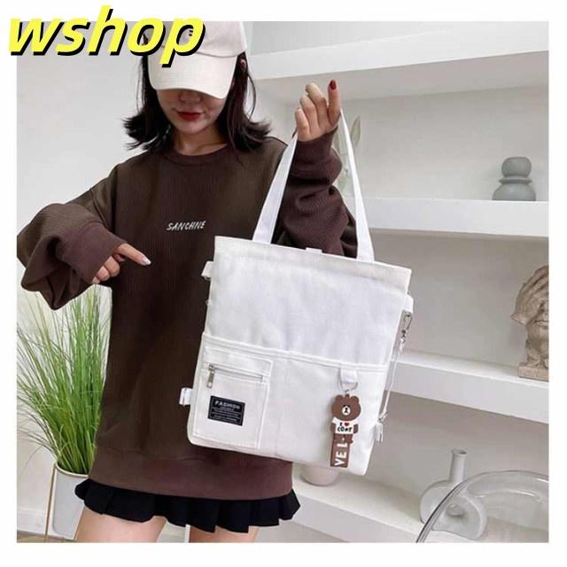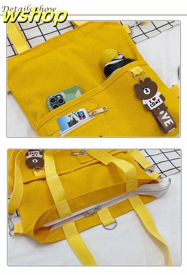 【wshop 】送料無料 キャンバス トートバッグ 大容量 3way 斜め掛け ショルダーバッグ シンプル レディース キャンバスバッグ エコバッグ 女性 鞄 大きめ a4 リュックサック 学生 大人 ファスナー ポケット 肩掛けカバン バッグ 鞄 無地 プレゼント