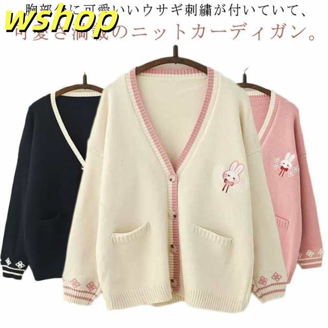 売れ筋アイテム 多機能デザイン 春服 収納便利 ニットカーディガン 秋服 ニット 森ガール Vネック 刺繍入り ゆったり レディース 可愛い 送料無料 ニットウエア レビュー高評価 】ウサギ刺繍 長袖 羽織り アウター カーディガン 【wshop 即納対応中
