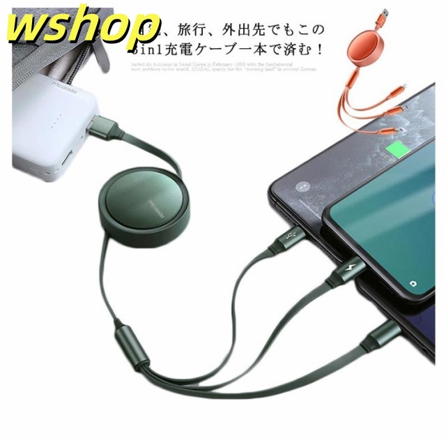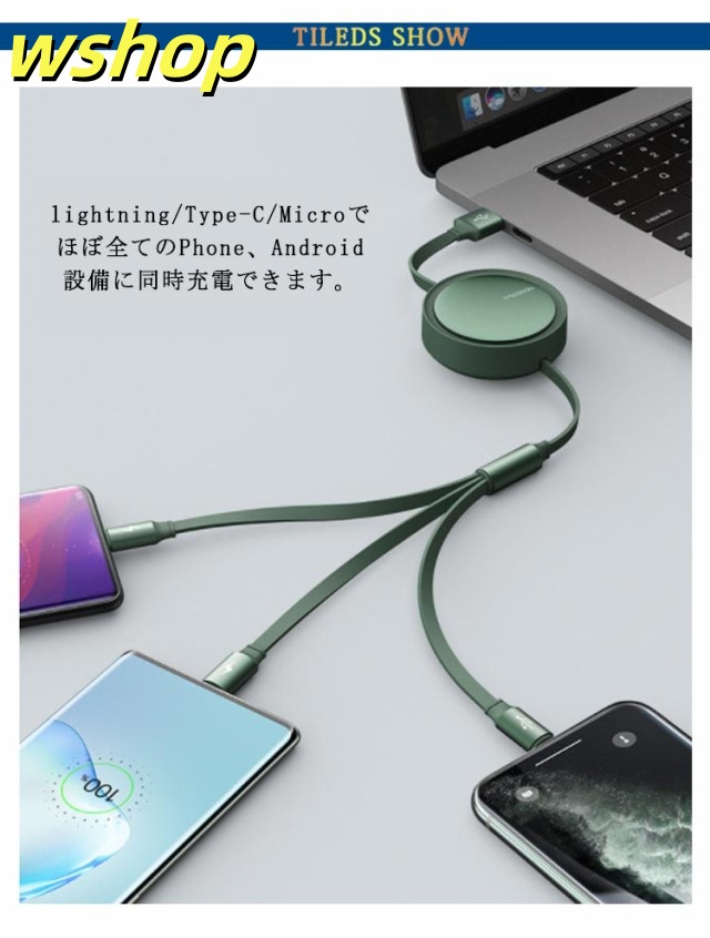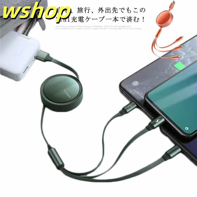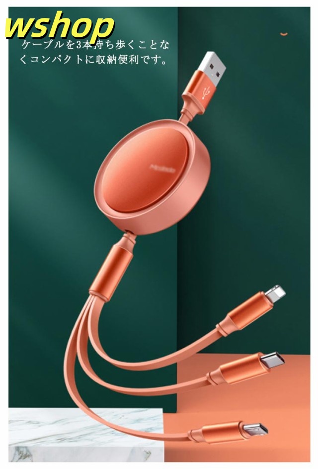 家中時間充実化 店長太鼓判 在庫わずか Micro 丈夫 売上急増中 高耐久 usbケーブル 】スマホ充電ケーブル ケーブル 各種対応 巻き取り 3-in-1 【wshop 同時充電 スマホ対応 Type-C 人気急上昇 断線防止 コンパクト 急速充電 数量限定入荷