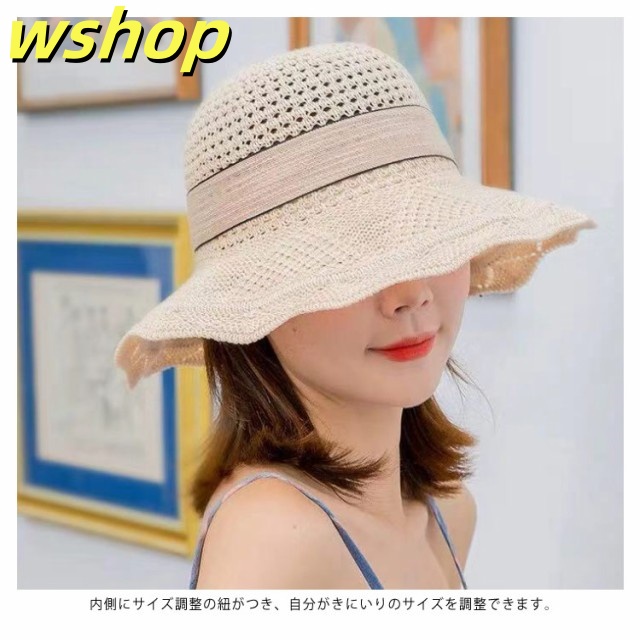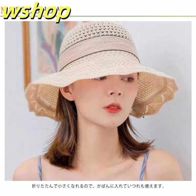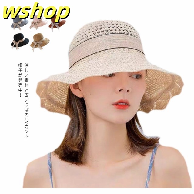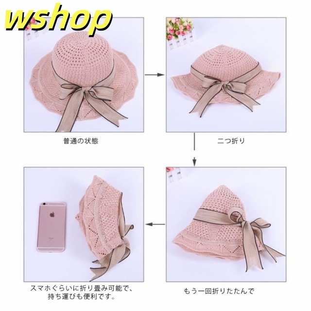 帽子 レディース 大きいサイズ UVカット 送料無料 リボン 蝶結び メッシュ ニット編み 小顔効果 紫外線対策 つば広 不規則つば 折りたたみ 日よけ かぶる日傘 UV サイズ調整可能 かわいい 自転車 運動会 春夏 母の日