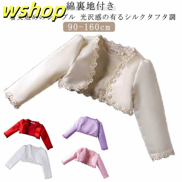 カーディガン 子供 フォマール ホワイト キッズボレロ フォーマル 長袖 子供 フォーマルボレロ 110 綿裏地 白 キッズ ベビーボレロ 90 100 130 120 子ども 140 150 160 キッズ ジャケット 長袖 結婚式 入学式 卒業式 フォーマルボレロ