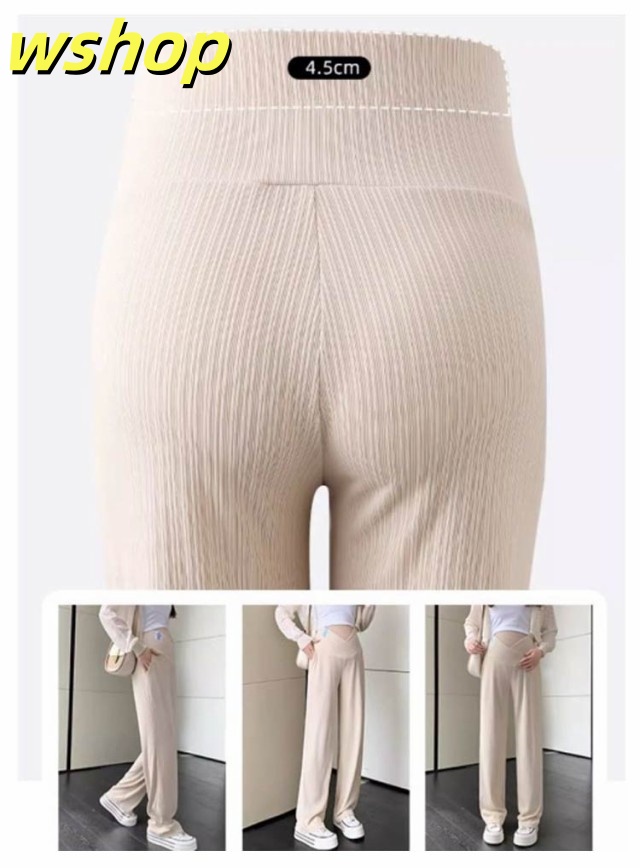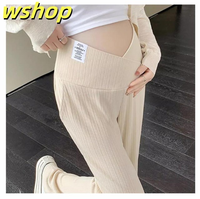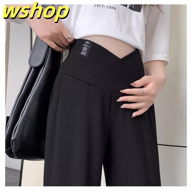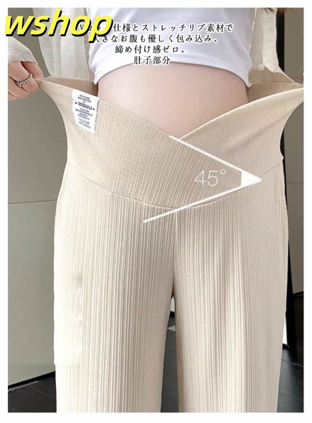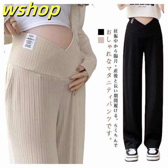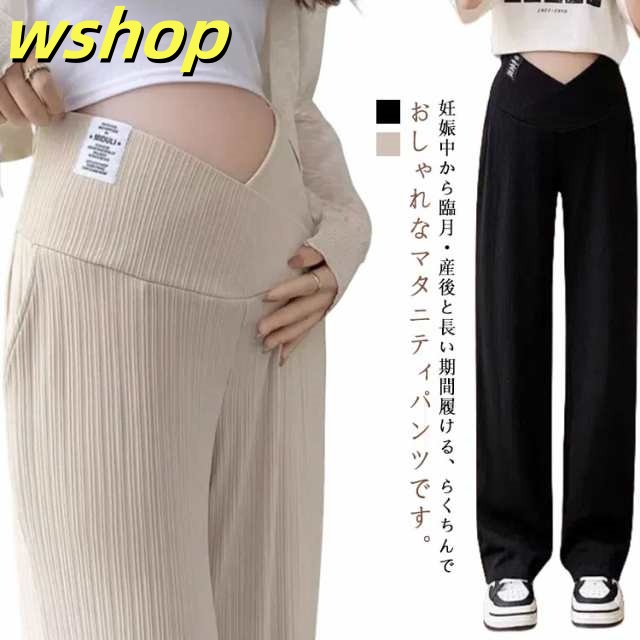 【wshop 】マタニティパンツ 美脚パンツ ワイド リブパンツ 産前産後兼用 ワイドパンツ ストレートパンツ ストレッチ 伸縮性 おしゃれ 春夏 マタニティ ボトムス 長ズボン マタニティウェア 妊婦服 妊娠中 臨月 オールシーズン ルームウェア オフィス 送料無料