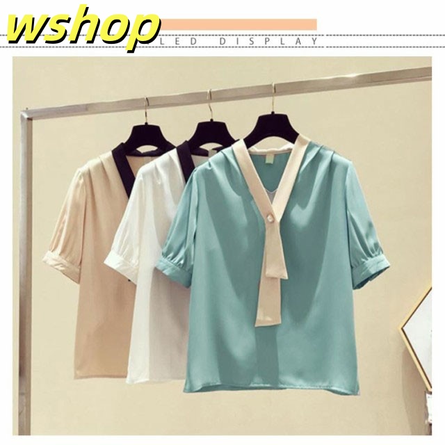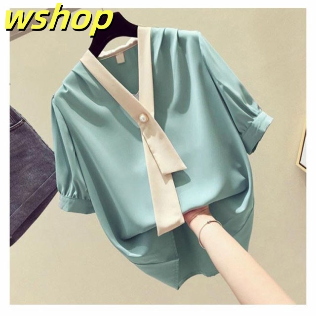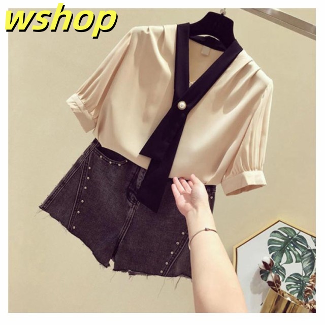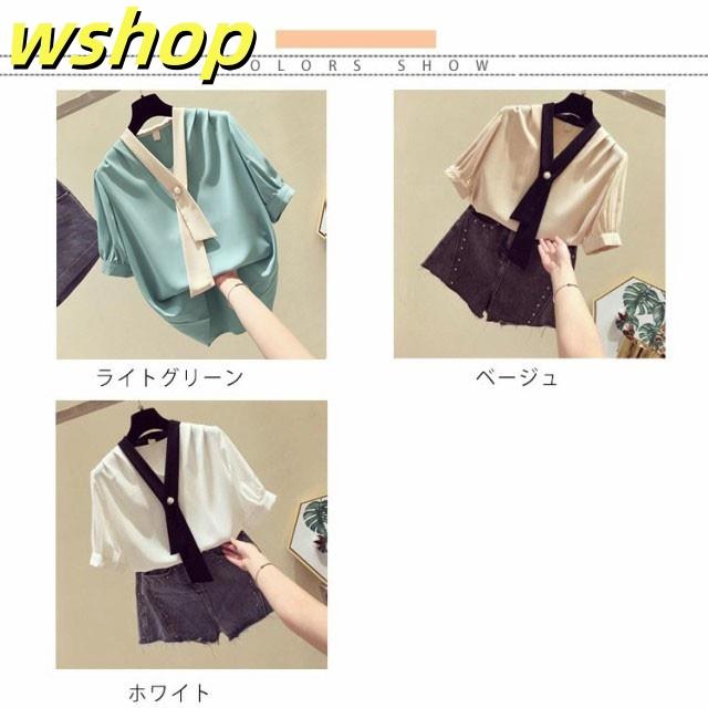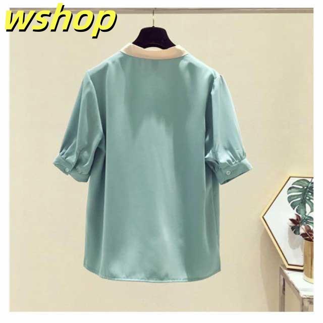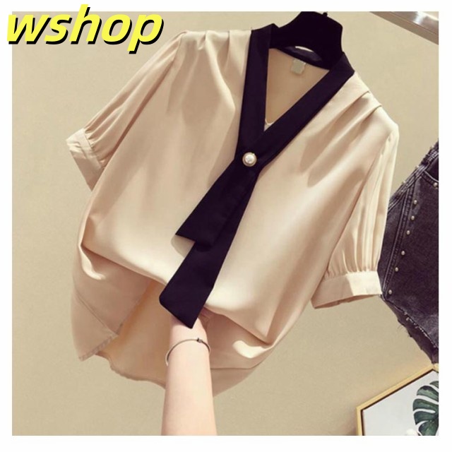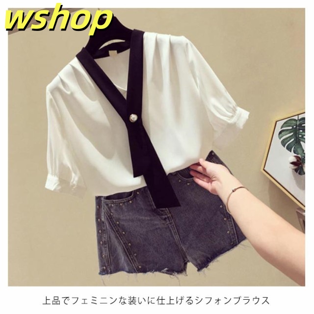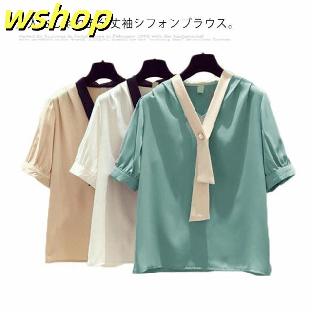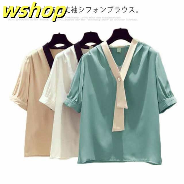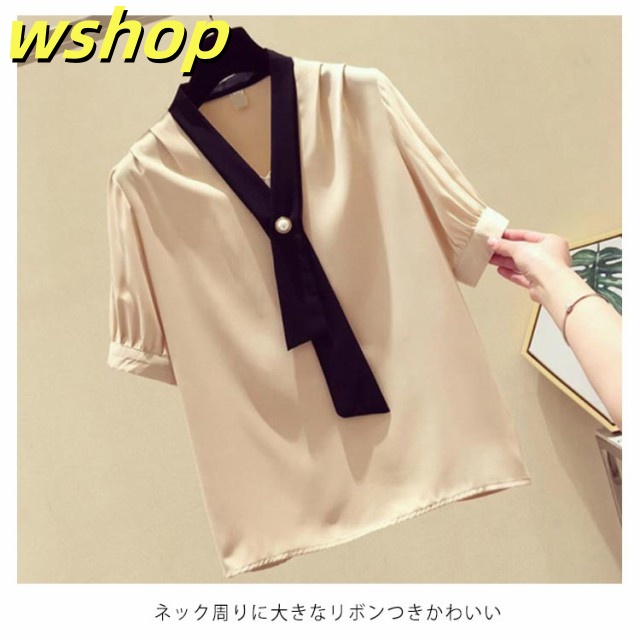 収納便利 売上急増中 五分丈袖ブラウス 【wshop レディース 夏 ゆったり トップス ショート丈 かわいい プルオーバーブラウス 大きいサイズ ルーズ シフォンブラウス 送料無料 リボン付き 】ブラウス エレガント オフィス シャツブラウス 通勤 今だけ限定