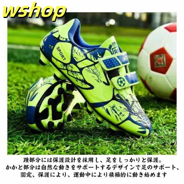 | 17.2-26.3cm!靴紐のつまずきがなく、運動中の安全性を高めます。 小さな子でも自分で履き脱ぎラクラクのマジックテープ式サッカーシューズ。 滑らかな合成皮革、耐摩耗性と防水性があり、防滑や防震機能付きの優れたクッション性もあり、雨の日にも楽に運動できます。 踵部分には保護設計を採用し、足をしっかりと保護。かかと部分は自然な動きをサポートするデザインで足のサポート、固定、保護により、運動中により積極的に動き始めます 屋内および屋外のあらゆるフットボール競技場、土や自然の芝生での使用に適しており、人工芝にも適しています。 | |