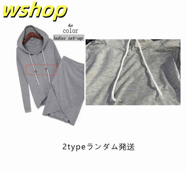 注目ランキング上位 毎日使える便利品 ウエストゴム カジュアル フード付き お レディース 無地 スカート 【wshop 今だけ 新登場 女性用 長袖 ポケット付き 】セットアップ パーカー ランキング常連 膝丈 2点セット スウェット 即納対応中