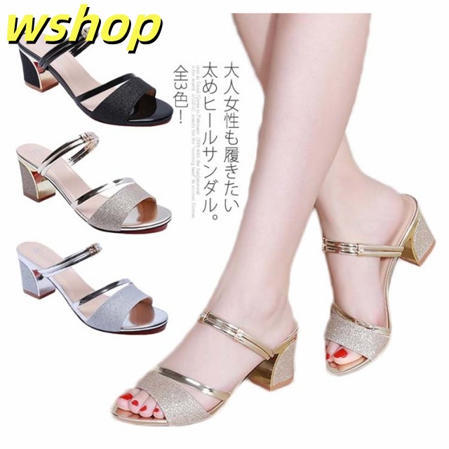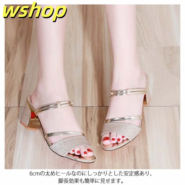 季節限定アイテム 多機能デザイン オフィス 通勤 ハイヒール ミュール キラキラ 婦人靴送料無料 【wshop 疲れない ミュールサンダル レディース 歩きやすい サンダル 即納OK パーティー 今だけ ヒール ランキング常連 夏 】全3色!サンダル 送料無料実施中