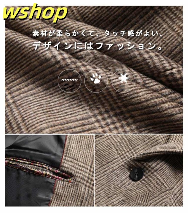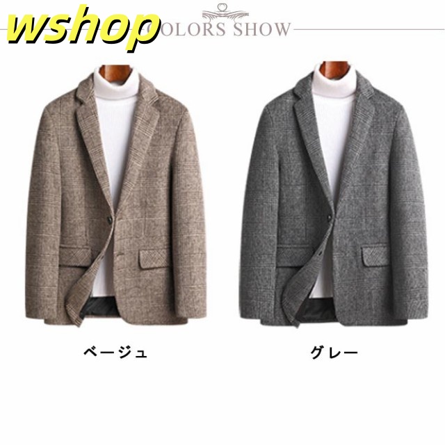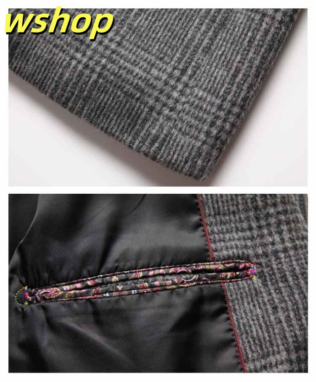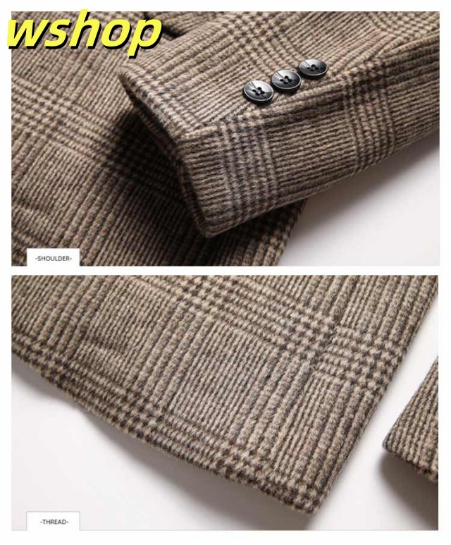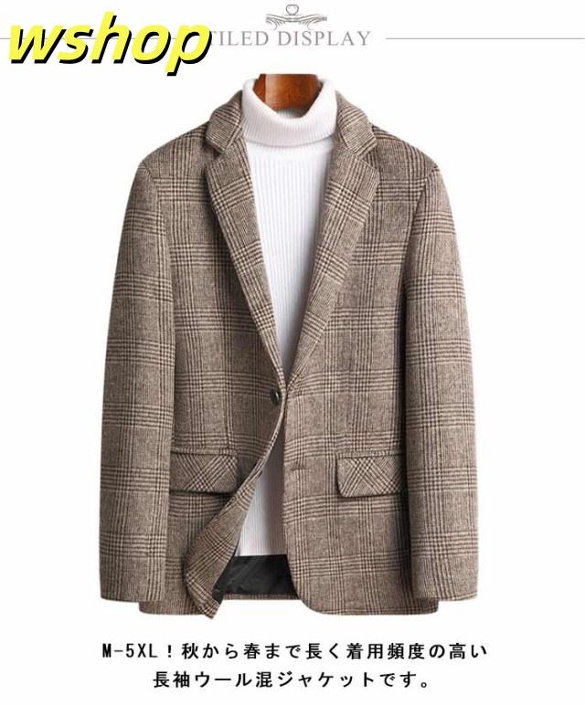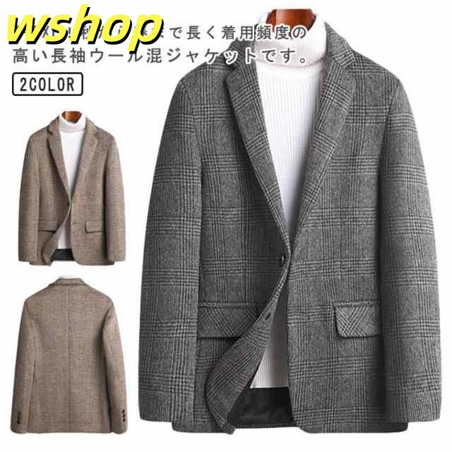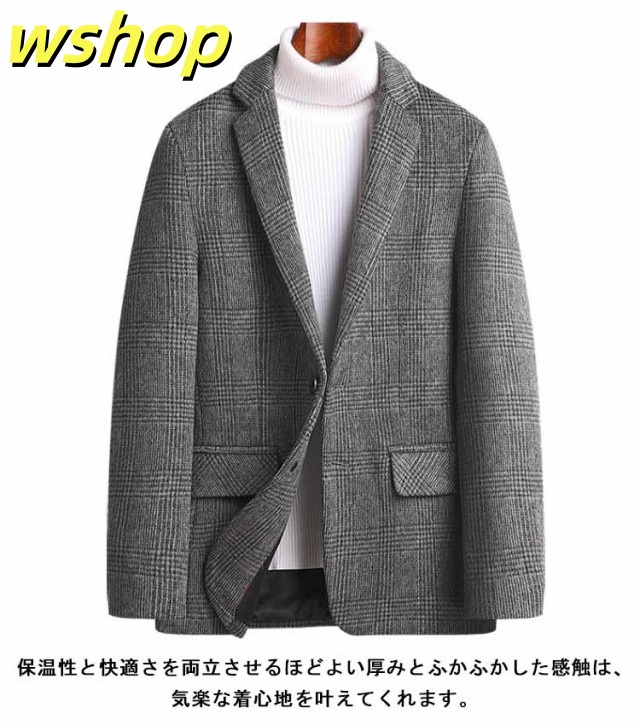 【wshop 】チェスターコート ジャケット 紳士 ショートコート チェック柄 チェスターコート メンズ ビジネス アウター ウール混 冬服 カジュアルジャケット テーラードジャケット 2つボタン 細身 厚手 スーツ ダッフル生地 ブレザー 男性着 通勤 大きいサイズ M-5XL 春 秋