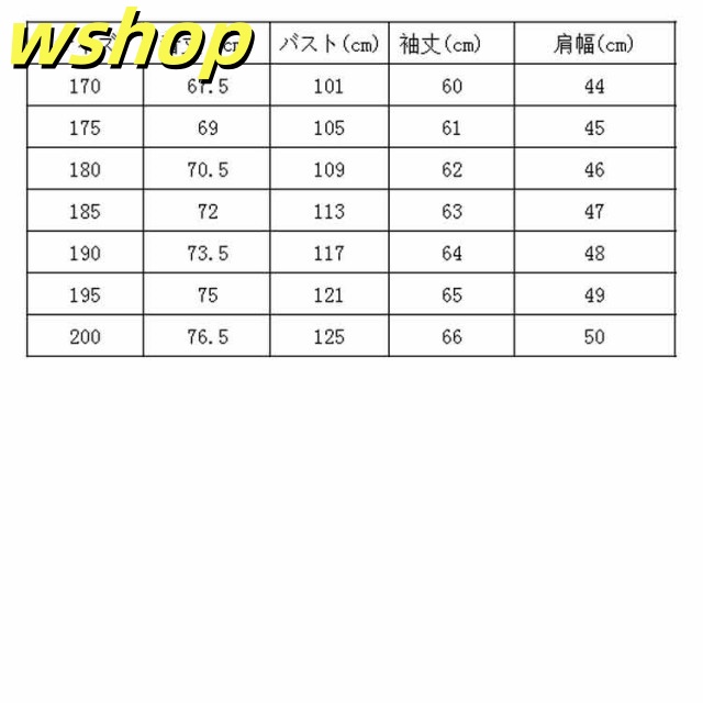 | サイズ | 170/M 175/L 180/XL 185/2XL 190/3XL 195/4XL 200/5XL |