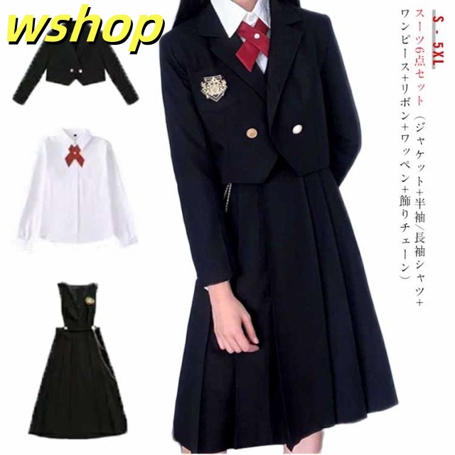 | スーツ6点セット(ジャケット+半袖/長袖シャツ+ワンピース+リボン+ワッペン+飾りチェーン) 着心地や肌触りの良い物を選びた。普通着としてもお洒落!七五三や卒入学式、発表会、ちょっとしたお出かけや、冠婚葬祭までオールマイティーに使えるスーツセット! 美シルエット可愛い!通気性に優れた生地でさらっと快適! | |