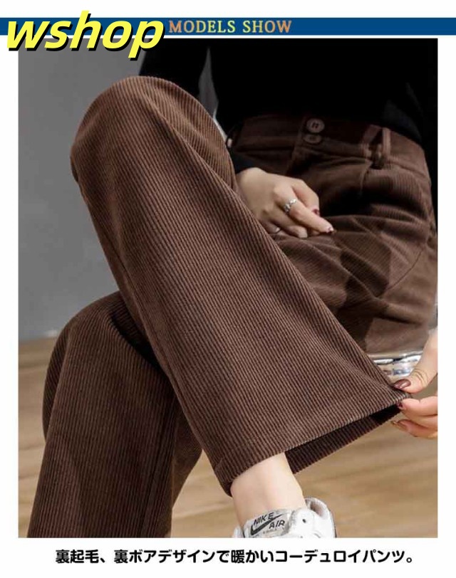 【wshop 】ストレートパンツ レディース ボトムス パンツ ロングパンツ パンツ 裏起毛 裏起毛パンツ 極暖 コーデュロイ テーパードパンツ ジョガーパンツ 防風 体型カバー ズボン 大きいサイズ ハイウエスト 裏ボア ぬくぬくパンツ ワイドパンツ 部屋着 秋 冬