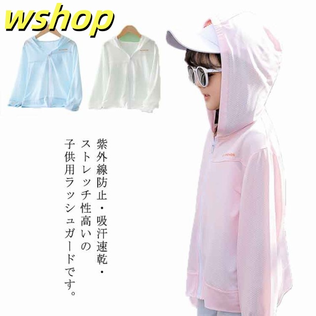 売れ筋アイテム 店長太鼓判 今だけ ひんやり SNS話題 男の子 吸汗速乾 キッズ 春夏 【wshop ドライメッシュ UVパーカー 新登場 冷感 紫外線対策 ラッシュパーカー 涼しい 長袖 日焼け止め 薄手 】ラッシュガード フード付き UVカット 女の子 子供用 お買い得プライス