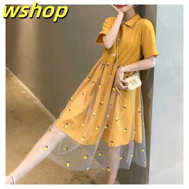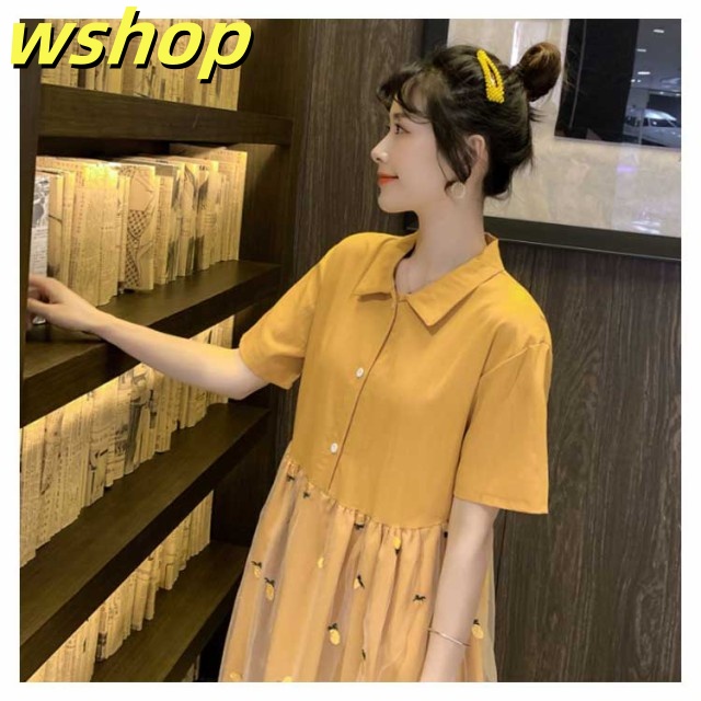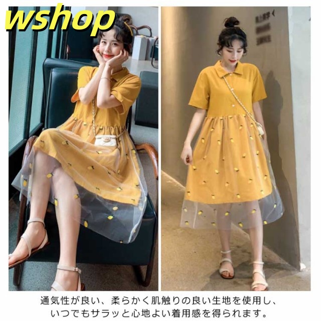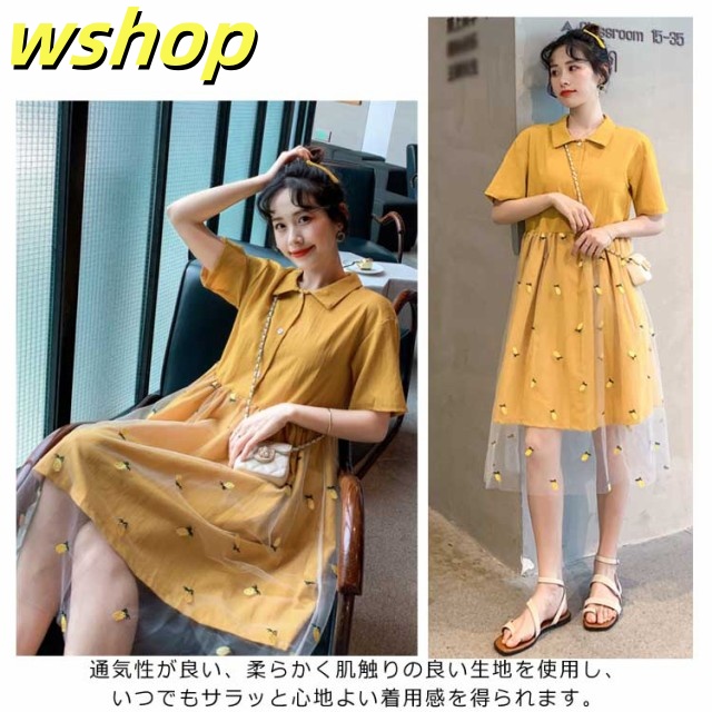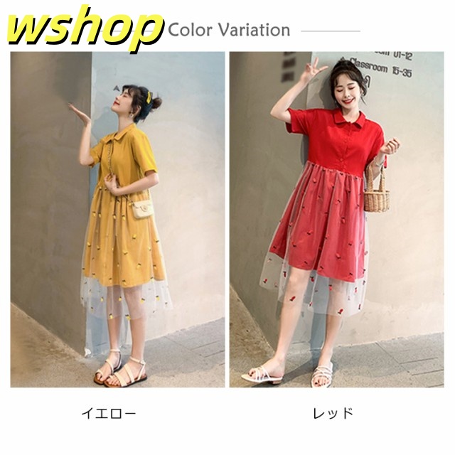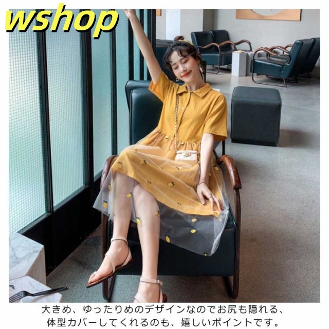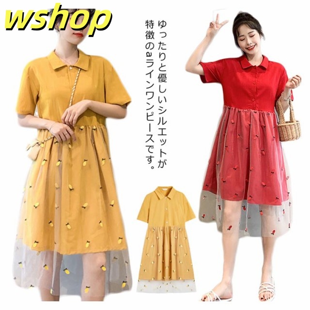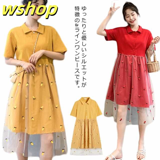 ワンピース Aラインワンピース 膝丈 レディース チュールスカート ドッキングワンピース フレアワンピース 刺繍 ゆったり ナチュラル 森ガール 可愛い きれいめ 半袖 通学 可愛い 新作