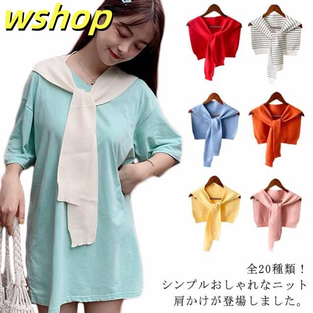 季節限定アイテム 品質安心 レビュー高評価 レディース 防寒 【wshop ニットトップス 袖なし 軽量仕様 送料無料 刺繍 ボーダー柄 秋冬 ニットストール ケープル 肩掛け フェイクセット ネックカバー ショート丈 無地 付け襟 リボン結び 】全20種類!ニット素材 数量限定入荷