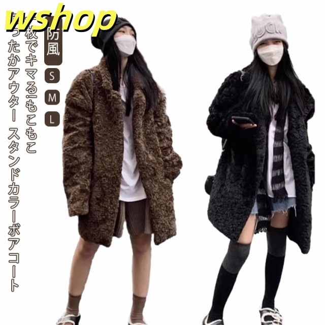 【wshop 】ロングコート ボアロングコート ボアコート 防寒 ゆったり あったか レディース 秋冬 軽量 きれいめ スタンドカラーコート ボアブルゾン モコモコ 冬コート 韓国風 ロングブルゾン アウター 冬 ボアロングコート コート ロング 防風 ボア もこもこ 大人 カジュアル