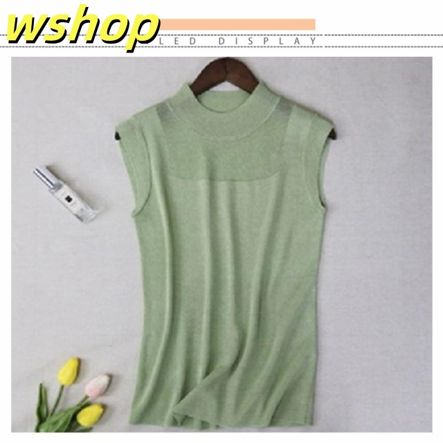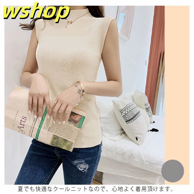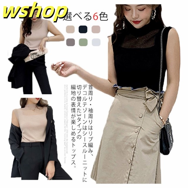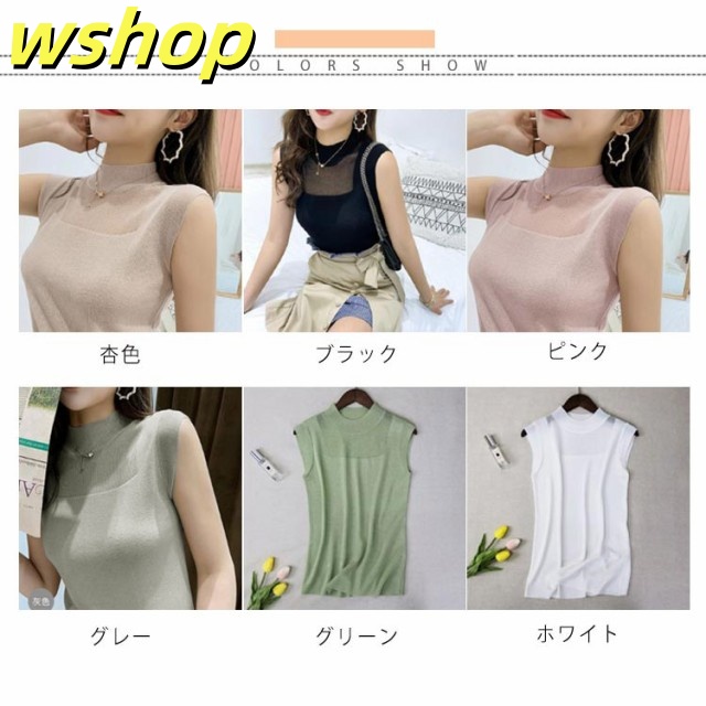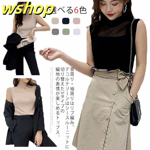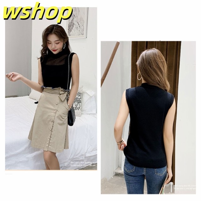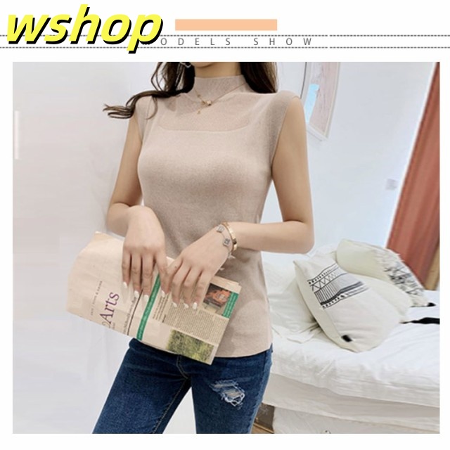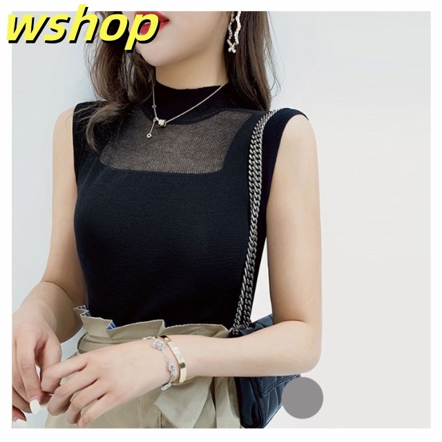 季節限定アイテム 多機能デザイン 収納便利 薄手 今だけ インナー 夏 タンクトップ シースルー おしゃれ トップス サマー ハイネック 【wshop オフィス 】ハイネックノースリーブニット SNS話題 ノースリーブ ニット レディース 送料無料実施中