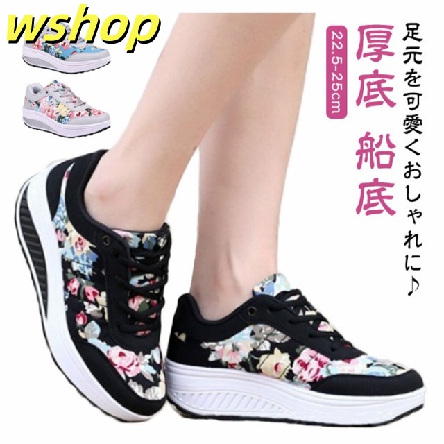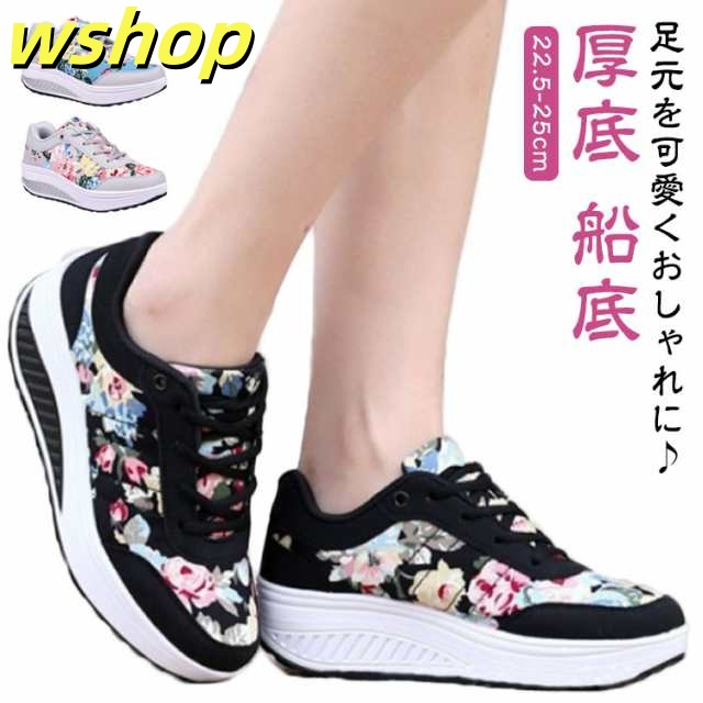 スニーカー レディース 厚底 船底 スニーカー 花柄 おしゃれ 可愛い ダッドスニーカー レースアップ シューズ 歩きやすい 疲れにくい 甲高 幅広 軽量 カジュアル 美脚 ウォーキングシューズ ナースシューズ