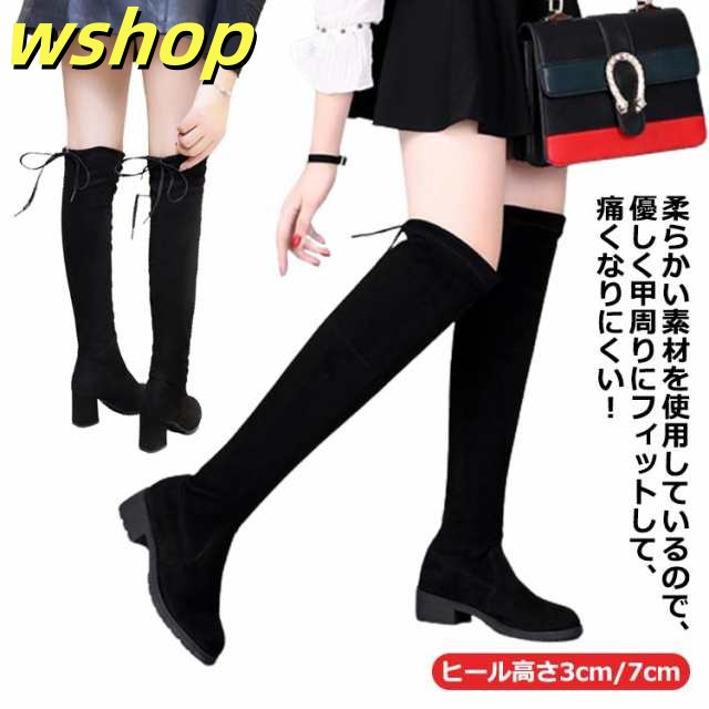 収納便利 レビュー高評価 ニーハイブーツ 裏起毛 】レディース シンプル ブーツ 高筒ブーツ カジュアル 通学 エンジニアブーツ 厚底 ヒール高さ3cm/7cm ロング シューズ スエードタッチ 通勤 歩きやすい 【wshop ロングブーツ 今だけ限定