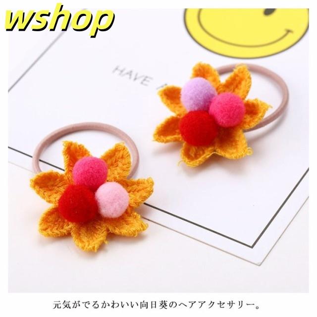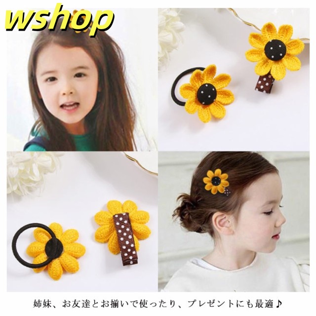 送料無料 ヘアゴム 2本セット キッズ 女の子 ヘアアクセサリー ピン パッチンヘアピン ヘアクリップ 髪留め 髪飾り ひまわり かわいい おしゃれ ベビー キッズファッション 痛くない 安全 柔らかい お出かけ デイリー