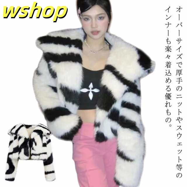 人気急上昇 SNS話題 通学 毛皮コートトップス 厚手 フェイクファー 防寒着 ウター ふわふわ 暖かい 【wshop S ギャル系 】送料無料 M ボアジャケット ショート丈 もこもこ お洒落 ゼブラ柄 ファーコート L ボアブルゾン 韓国風 冬 原宿 長袖 XL カジュアル 在庫わずか