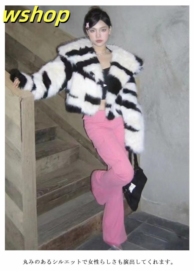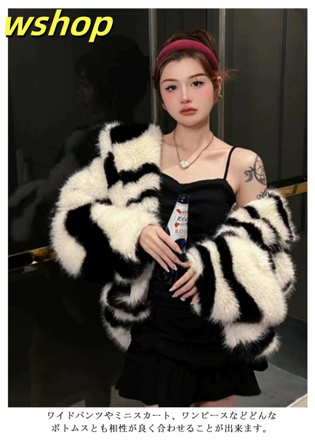 送料無料 ギャル系 ゼブラ柄 ファーコート フェイクファー ショート丈 原宿 ウター 韓国風 冬 毛皮コートトップス 厚手 暖かい 長袖 防寒着 もこもこ ふわふわ ボアブルゾン ボアジャケット お洒落 カジュアル 通学 S M L XL