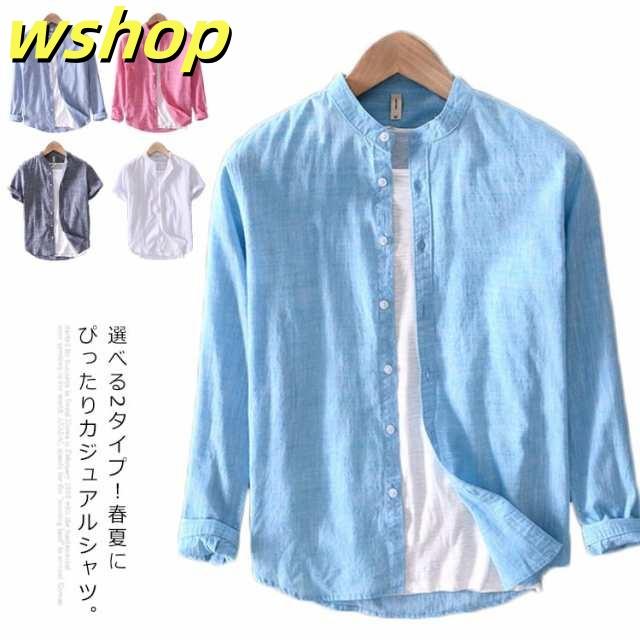 【wshop 】送料無料 選べる2タイプ!シャツ メンズ トップス カジュアルシャツ ブラウス 羽織り 長袖ブラウス 半袖シャツ カジュアルブラウス 半袖ブラウス 羽織 長袖シャツ 立ち襟 無地 薄手 コットン 綿 大きいサイズ おしゃれ シンプル 上品 春夏