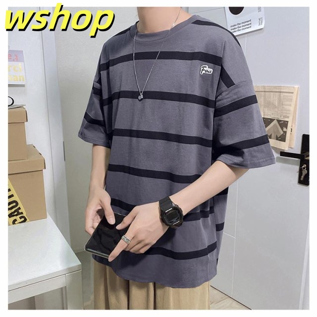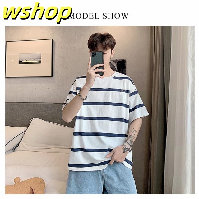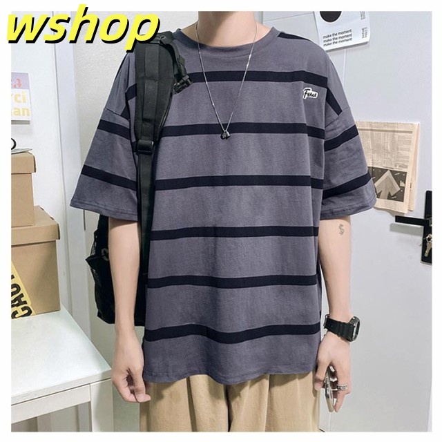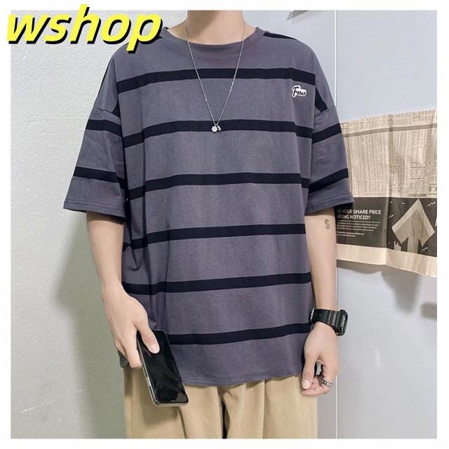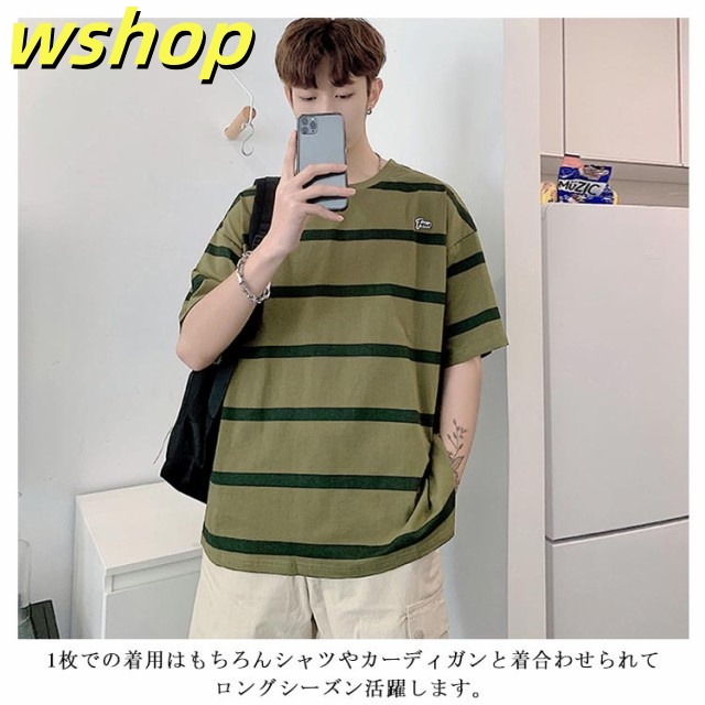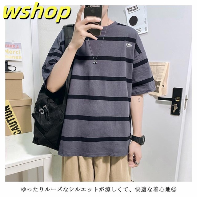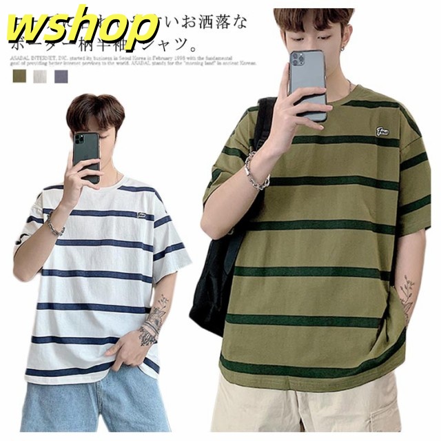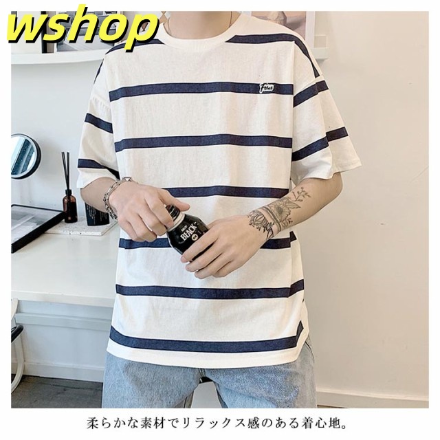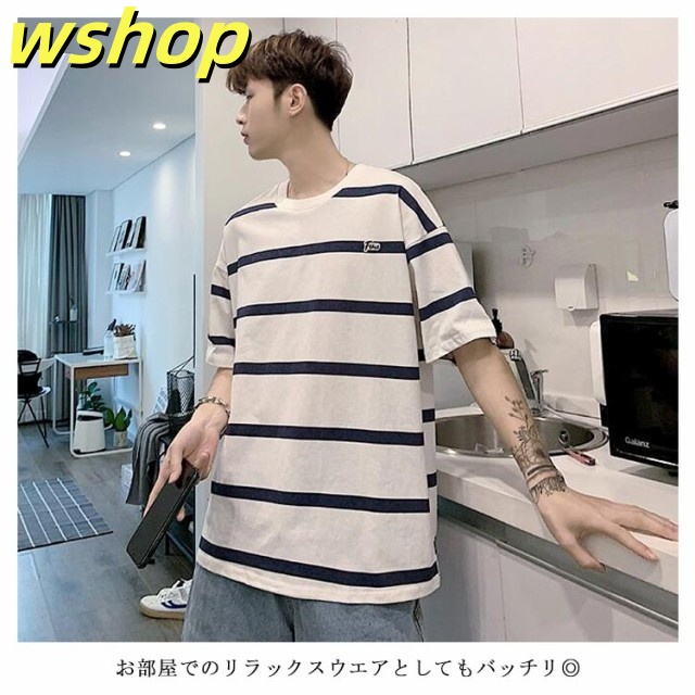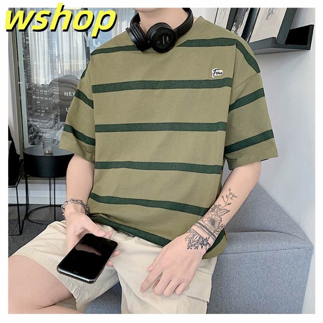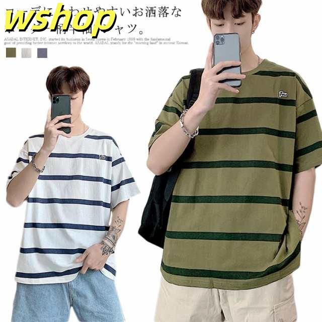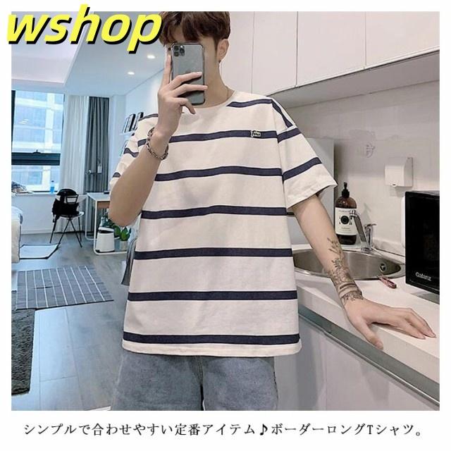 新登場 売上急増中 夏 メンズ カジュアル ゆったり リラックス プルオーバー 定番 トップス 春 ロングT カットソー 薄手 おしゃれ 無地tシャツ 】送料無料Tシャツ ボーダー柄 ストレッチ ラウンドネック ドロップショルダー 【wshop 大きいサイズ 半袖Tシャツ 在庫わずか
