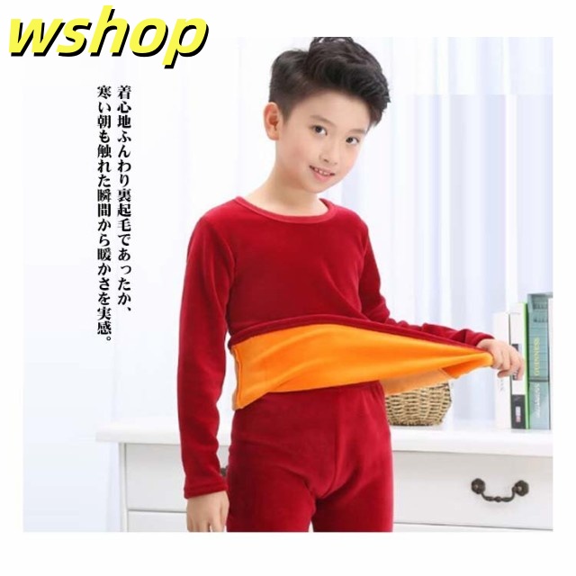 話題商品 売上急増中 ロンt インナーウェア Uネック 【wshop 裏起毛 極暖 ルームウェア 子供服 肌着 長袖 長ズボン 厚手 下着 上下セット 女の子 セットアップ インナーシャツ tシャツ 発熱 保温 秋冬 パジャマ ヒートテック 】キッズ 防寒 男の子 キッズ 丸首 送料無料