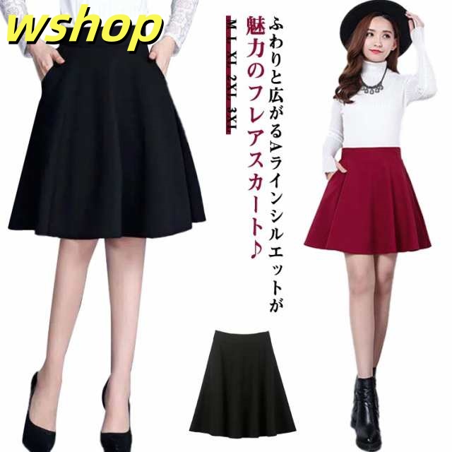 即納OK SNS話題 秋 ポケット付き 30代 【wshop インナーパンツ付 レディース 冬 カジュアル 美脚 選べる 送料無料 ミニスカート ハイウエスト フレアースカート 20代 ウエストゴム サーキュラースカート 大人 】厚手 フレアスカート ひざ丈 ミニ丈 今だけ限定