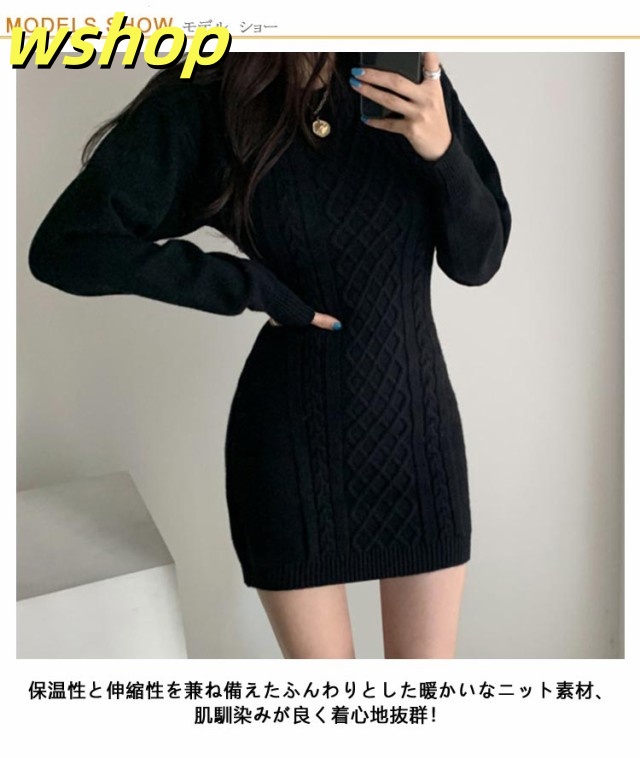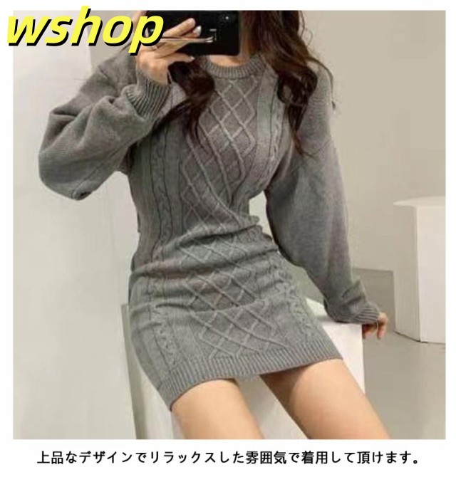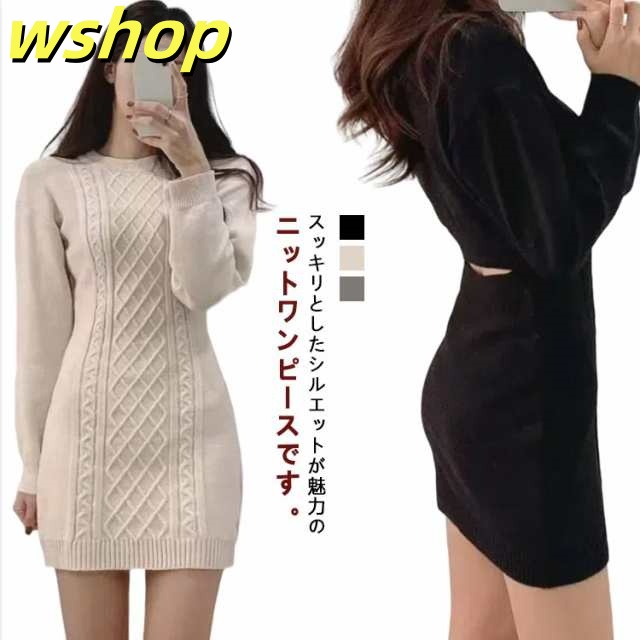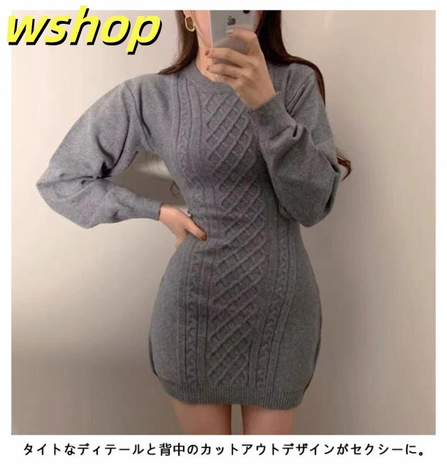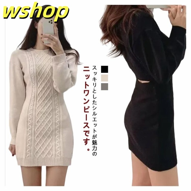 人気急上昇 売上急増中 タイト 秋冬 可愛い タイトワンピース バック開き ニットワンピース 】レディース クルーネック 背中開き フィット ミニワンピ 大人 おしゃれ ニット ケーブル編み ひざ上 ワンピース 長袖 大きいサイズ スリム 【wshop 送料無料