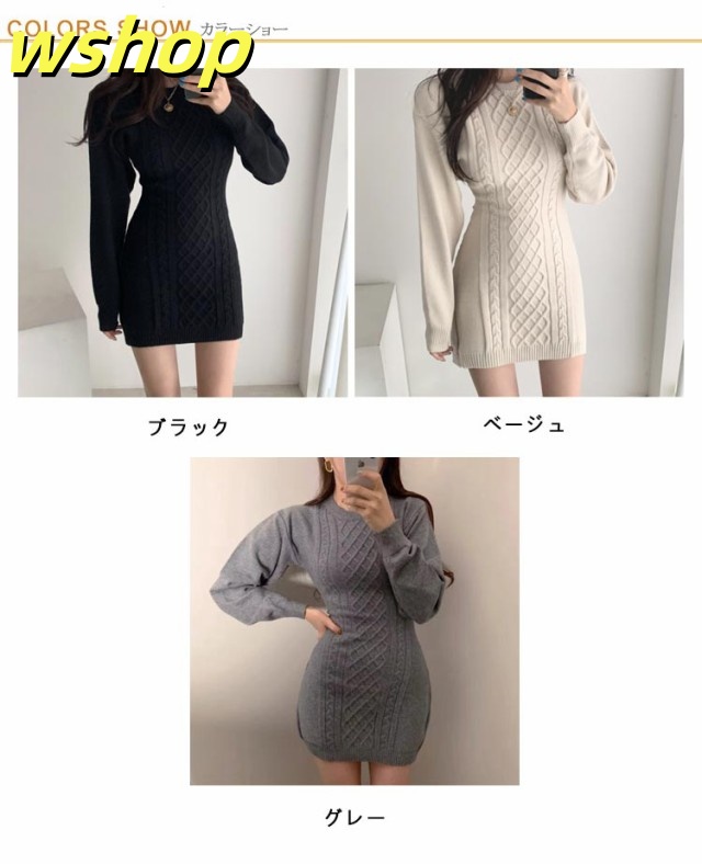 レディース 大人 ワンピース ニットワンピース ひざ上 ニットワンピース ミニワンピ ニット タイトワンピース 長袖 スリム フィット タイト クルーネック ケーブル編み バック開き 背中開き 秋冬 可愛い 大きいサイズ おしゃれ