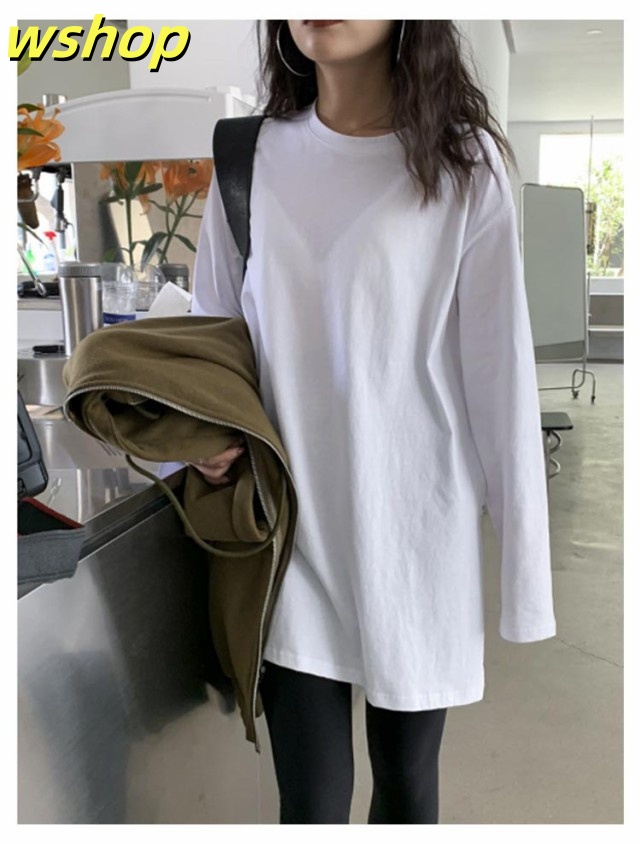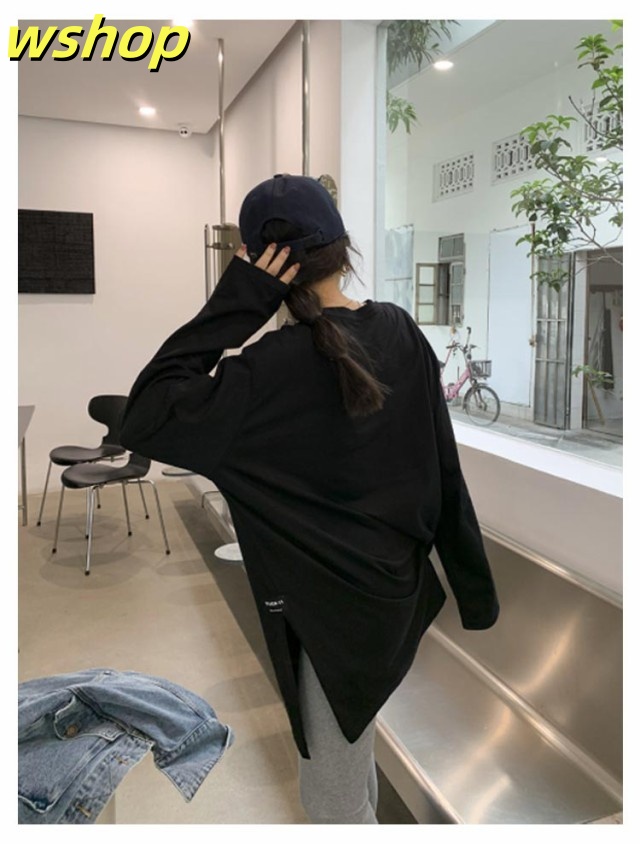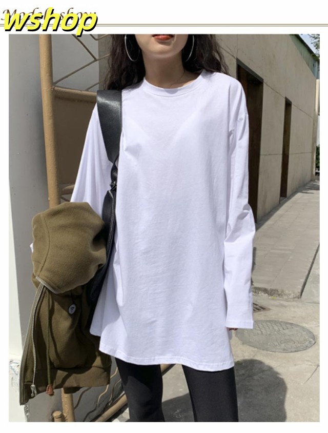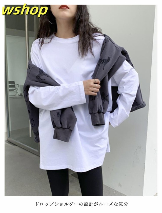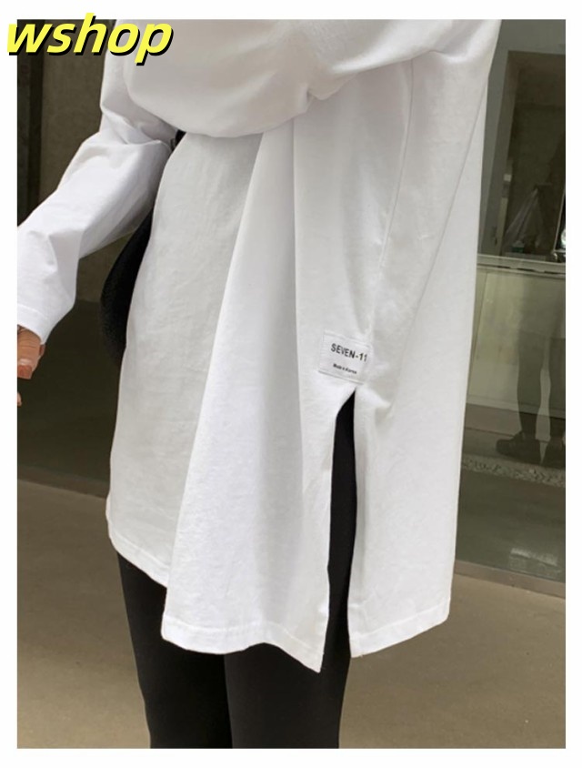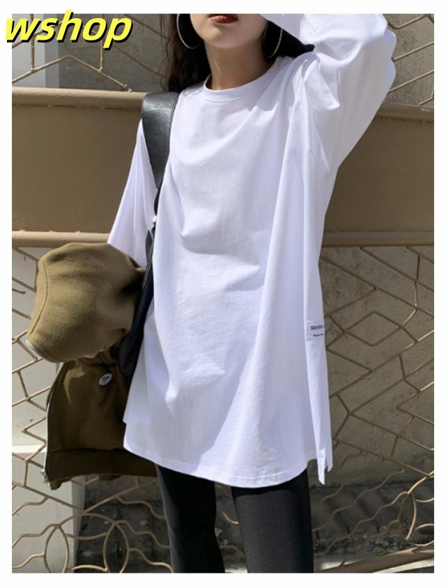 注目ランキング上位 品質安心 ロゴ 2枚組 レビュー高評価 スリット 【wshop 長袖tシャツ ロング丈 Tシャツ 即納OK ゆったり プルオーバー ドロップショルダー ラウンドネック 】レディース 送料無料 ゆるTシャツ 無地 ロングTシャツ 長袖 トップス カットソー 数量限定入荷