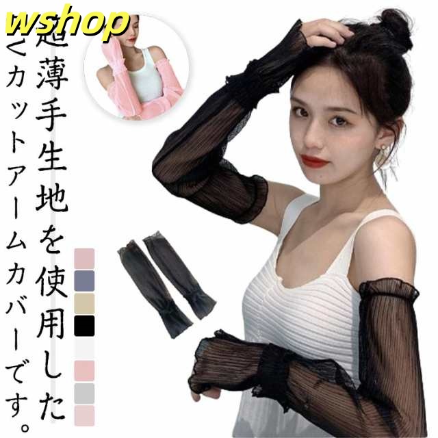 収納便利 売上急増中 日除け 対策 冷房対策 アウトドア 紫外線 】ロング レース 腕カバー 夏 手袋 女性 日よけ 可愛い アームカバー 指なし 両腕 カット 日焼け対策 接触冷感 春 シフォン かわいい レースアームカバー レディース 【wshop UV おしゃれ シアー 送料無料