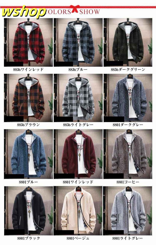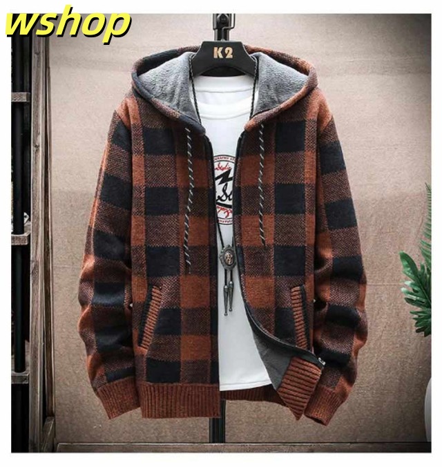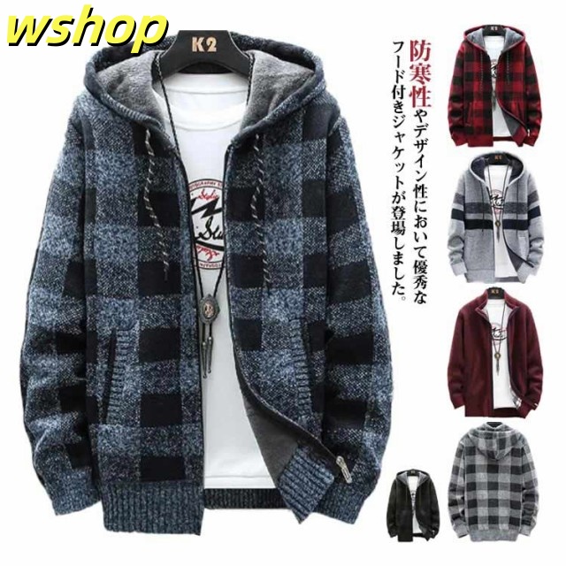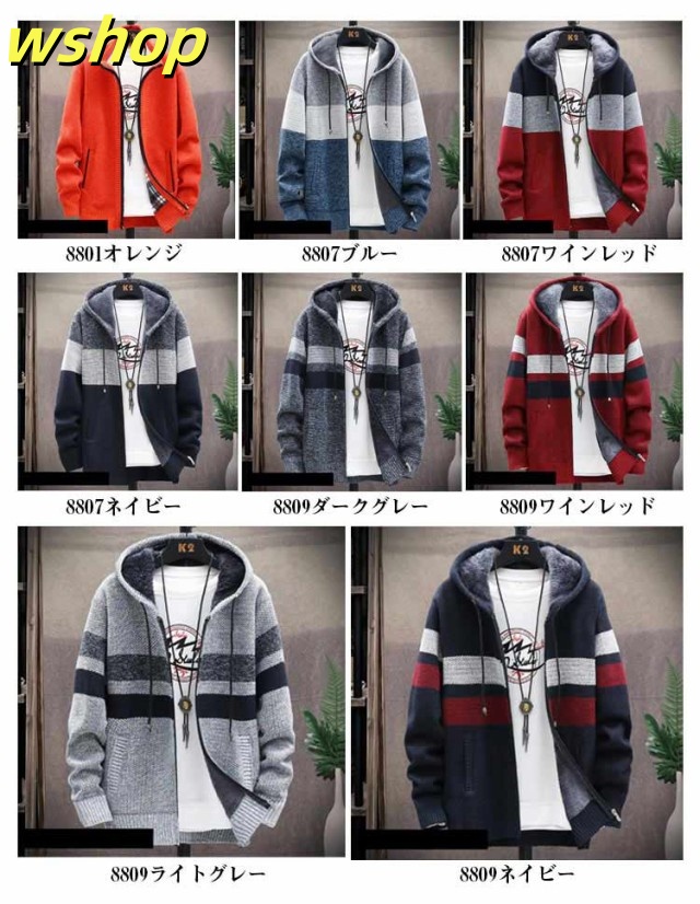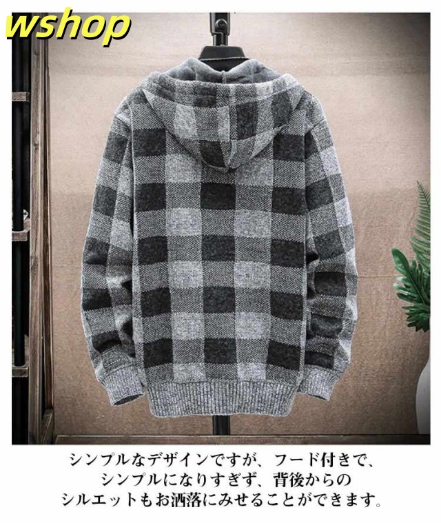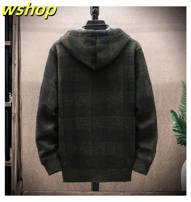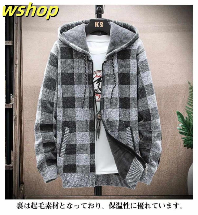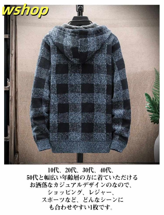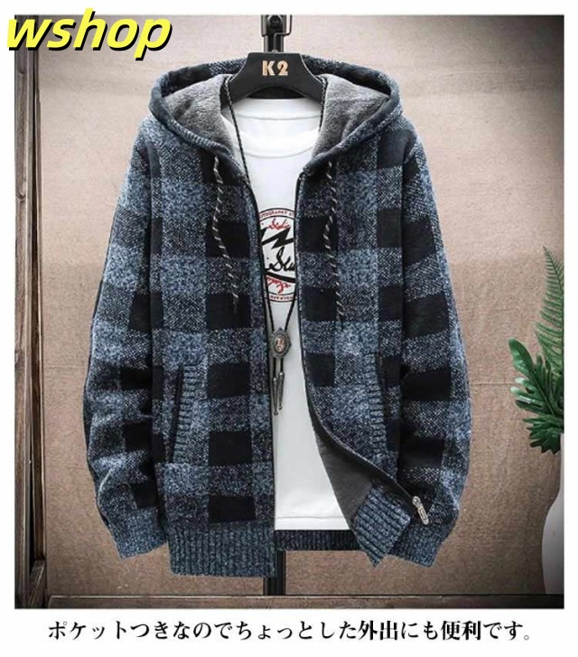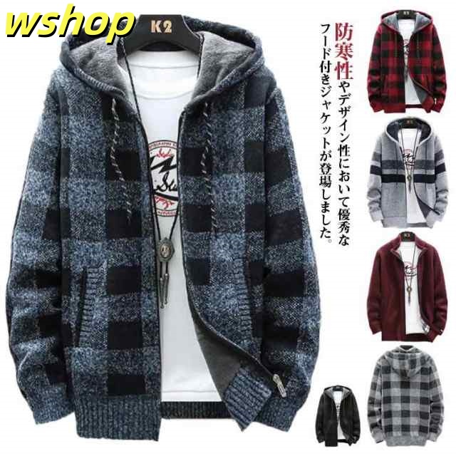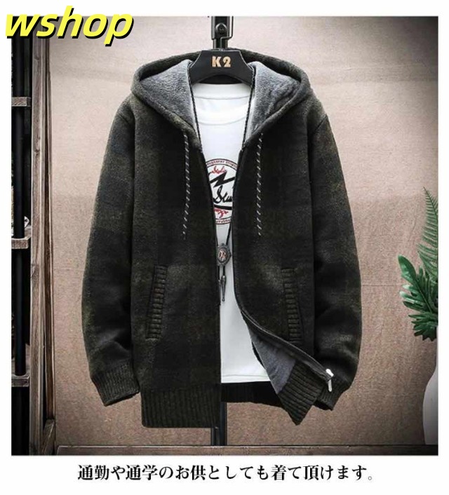 【wshop 】ニットカーディガン 防風 ロング丈 ジップアップパーカー ジャンパー ロングパーカー カジュアル 上着 メンズ フード付き 裏起毛 カーディガン あたたかい ブルゾン アウター お洒落 ジャケット ニットカーディガン 防寒 春 秋 冬 大きいサイズ ゆったり 送料無料
