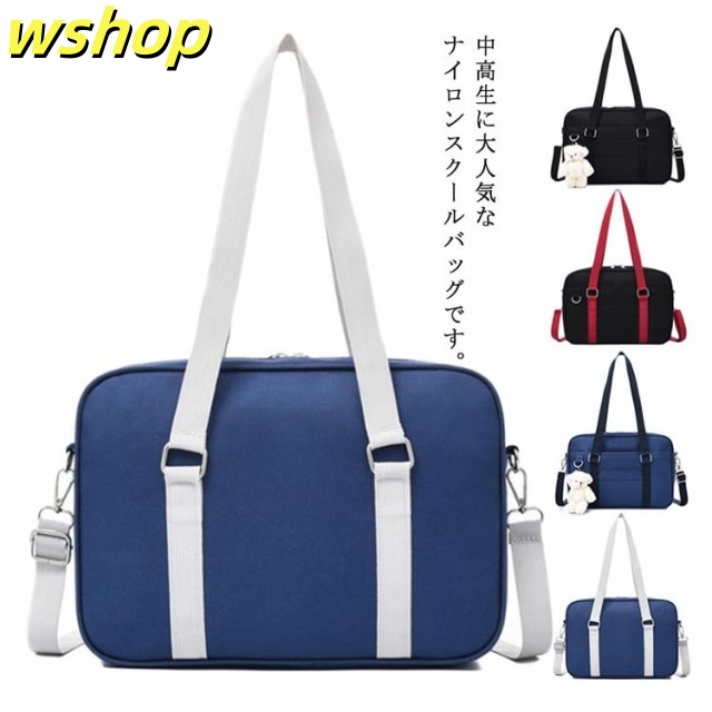 スクールバッグ サブバッグ 中学生 高校生 ナイロン バッグ 大容量 通学 女子高生 男女兼用 女子 男子 ボストンバッグ 大容量 かわいい JKコスプレ 黒 学生鞄 A4対応