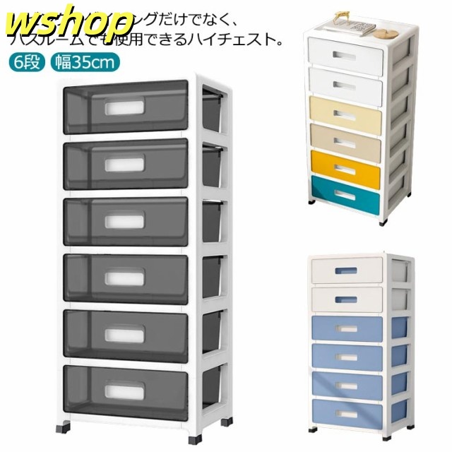 話題商品 SNS話題 すき間収納 ハイ クローゼット ラック キッチンワゴン 幅35cm スリム キッチン収納 棚 タンス 引き出し 【wshop サニタリー プラスチック収納ボックス チェスト 洗面所 衣装ケース 一人暮らし 】チェスト 6段 収納ケース リビングチェスト 送料無料