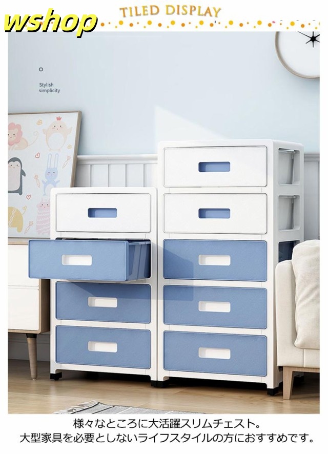| リビングやダイニングだけでなく、バスルームでも使用できるハイチェスト。 様々なところに大活躍スリムチェスト。大型家具を必要としないライフスタイルの方におすすめです。 引き出しは抜け落ち防止ストッパー付きで、不意の落下による破損やケガを防ぎます。 湿気に強いプラスチック製なので、洗面所やミンク横、お風呂周り湿気の多い場所でも活躍します。 ベッドサイドワゴンとしたり、子供服収納チェストとしたり活用できるロータイプ薄型チェスト。 中身が見えないタイプもあり、生活感を隠し、リビングに置いてもスッキリと馴染みます。 スムーズに移動できるコロ付きでお掃除など時もラクラク。 | |