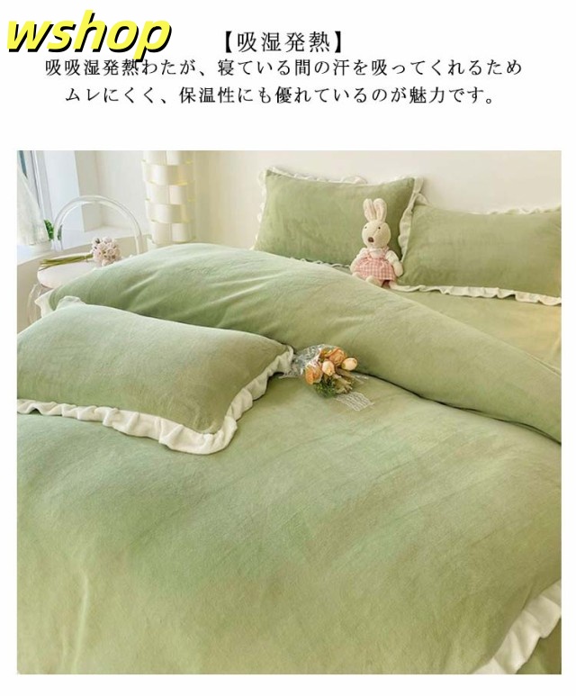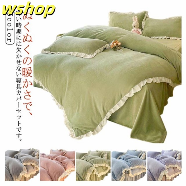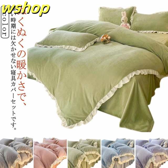 人気急上昇 SNS話題 セミダブル 送料無料 ダブル 枕カバー 布団カバーセット 【wshop 北欧風 ベッドカバー ふわふわ 寝具カバー フリル付き 可愛い 布団カバー 4点セット 静電気防止 】暖かい 洗える 秋冬用 マイクロファイバー 掛け布団カバー 防寒対策 今だけ限定