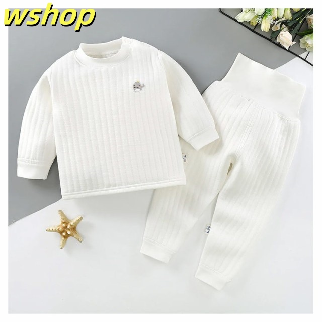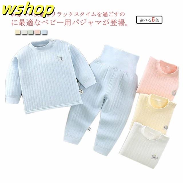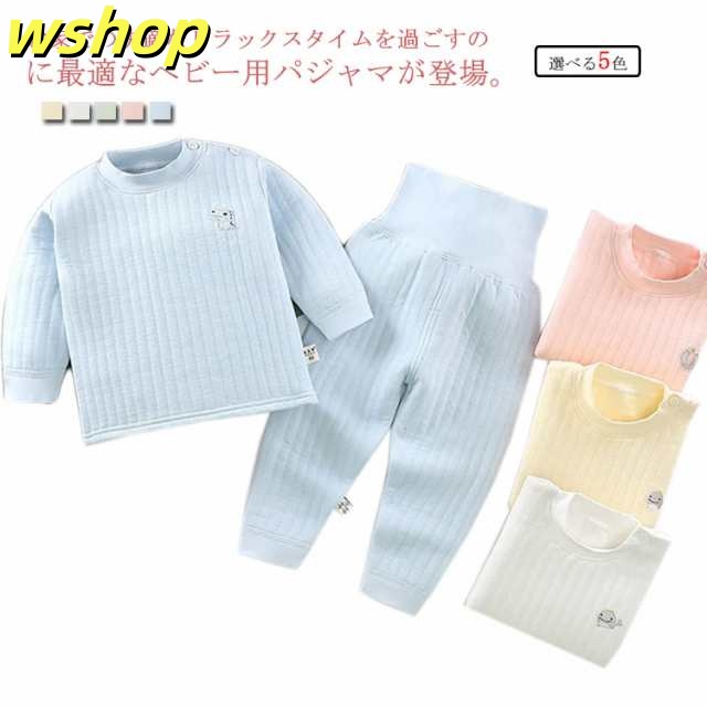 即納OK レビュー高評価 ルームウエア 部屋着 腹巻付き キルト 上下セット 無地 【wshop cm 厚手 寝巻き 綿100% パジャマ 長袖 】【送料無料】ベビー服 暖かい 長ズボン シンプル 女の子 春秋冬 男の子 60/70/80/90/100/110 防寒 赤ちゃん 今だけ限定