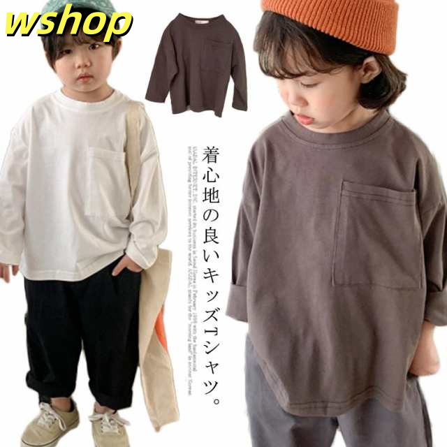 送料無料 韓国子供服 Tシャツ キッズ トップス 女の子 カットソー 男の子 長袖tシャツ ベビー ルームウエア 重ね着 部屋着 ユニセックス ゆったり ビッグシルエット 無地 シンプル 春秋