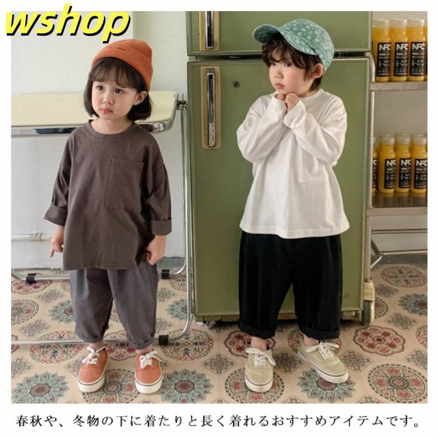 レビュー高評価商品 店長太鼓判 春秋 ルームウエア ユニセックス ゆったり トップス 女の子 【wshop 重ね着 部屋着 韓国子供服 長袖tシャツ 今だけ 男の子 シンプル ベビー 話題商品 カットソー SNS話題 ビッグシルエット Tシャツ 無地 】送料無料 キッズ 数量限定入荷