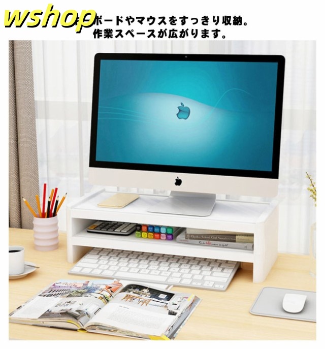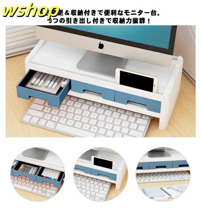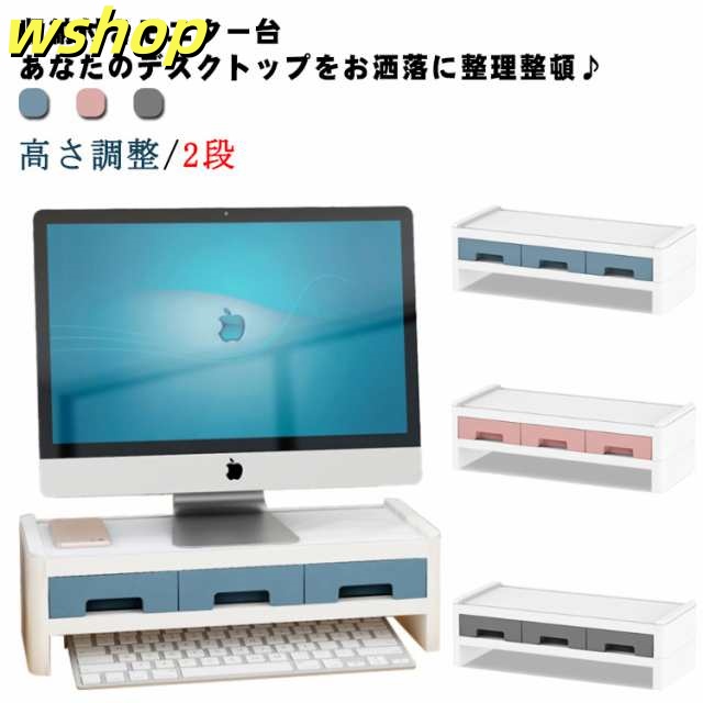 【wshop 】モニター台 高さ調整 2段 モニタースタンド 机上ラック おしゃれ 北欧風 収納 小物入れ テレワーク デスク収納 机上台 パソコン台 卓上 引き出し付き 小物 肩こり軽減 パソコンモニター台 スマホ ホルダ スタンド キーボード収納 卓上 整理 PCラック