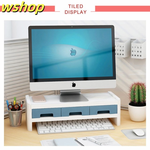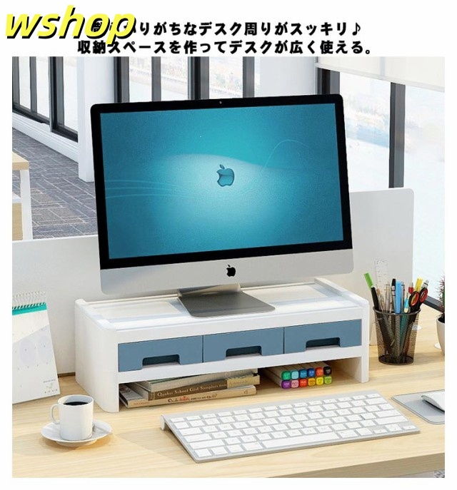 | 収納付きモニター台。あなたのデスクトップをお洒落に整理整頓♪ 高さ変更&収納付きで便利なモニター台。3つの引き出し付きで収納力抜群! 散らかりがちなデスク周りがスッキリ♪収納スペースを作ってデスクが広く使える。 鉢植えなどの飾り物をつけば、特有の癒し空間を作れます。 キーボードやマウスをすっきり収納。作業スペースが広がります。 目線が上がって操作がしやすい。モニターを適切な高さにすれば、猫背を防ぎ、首や肩の負担を軽減することにつながります。 | |