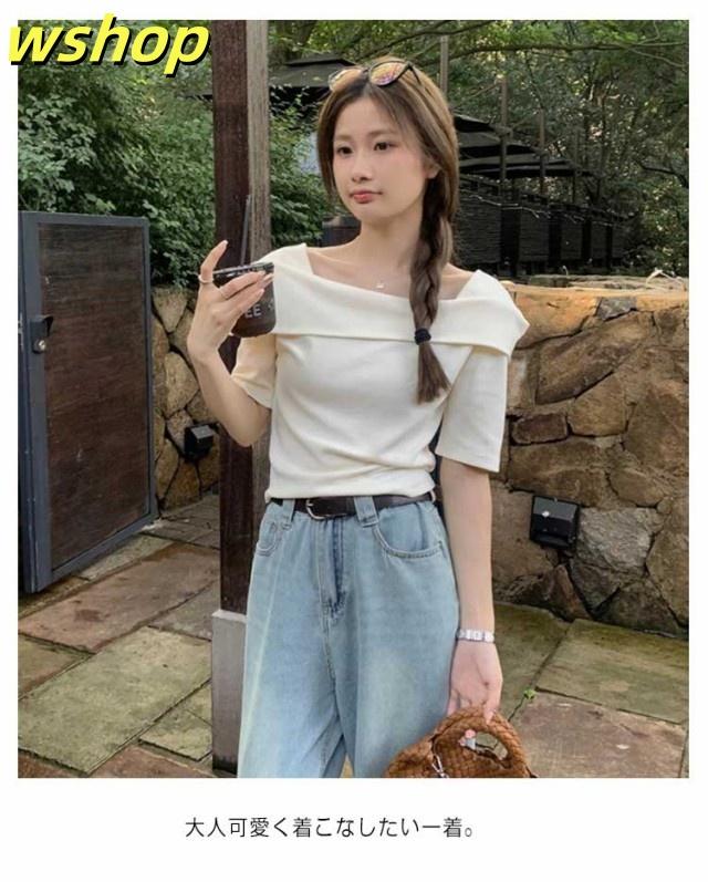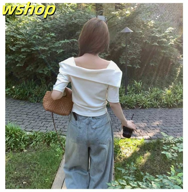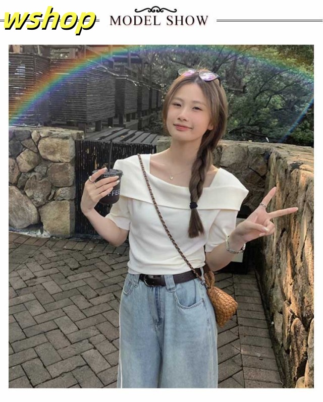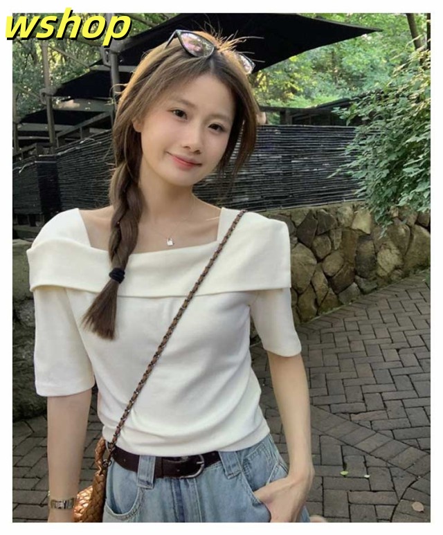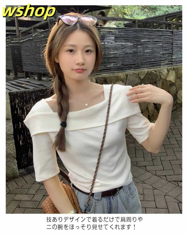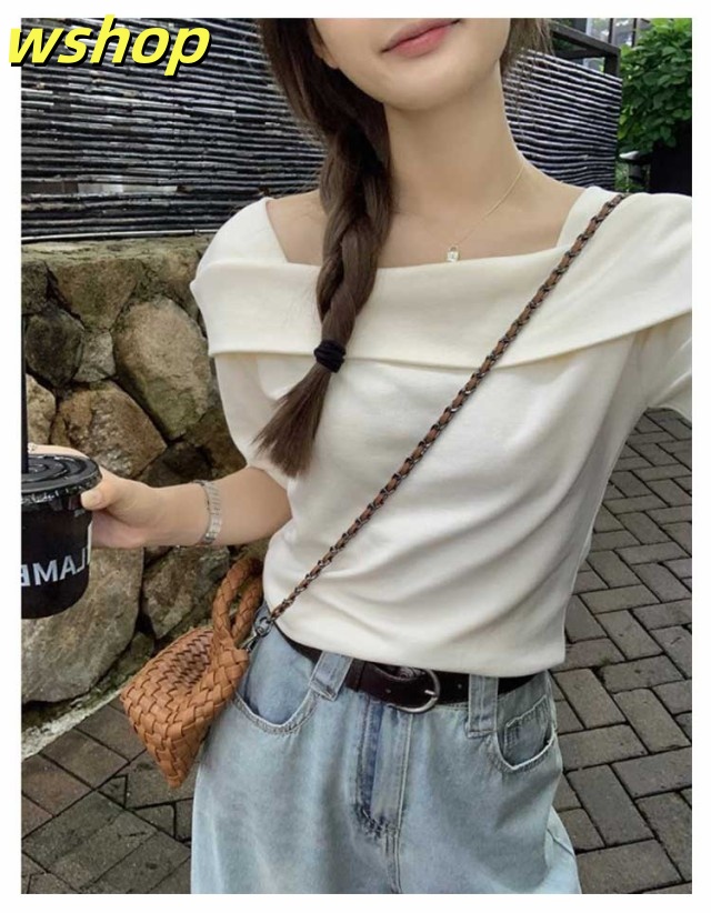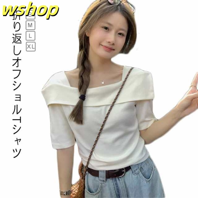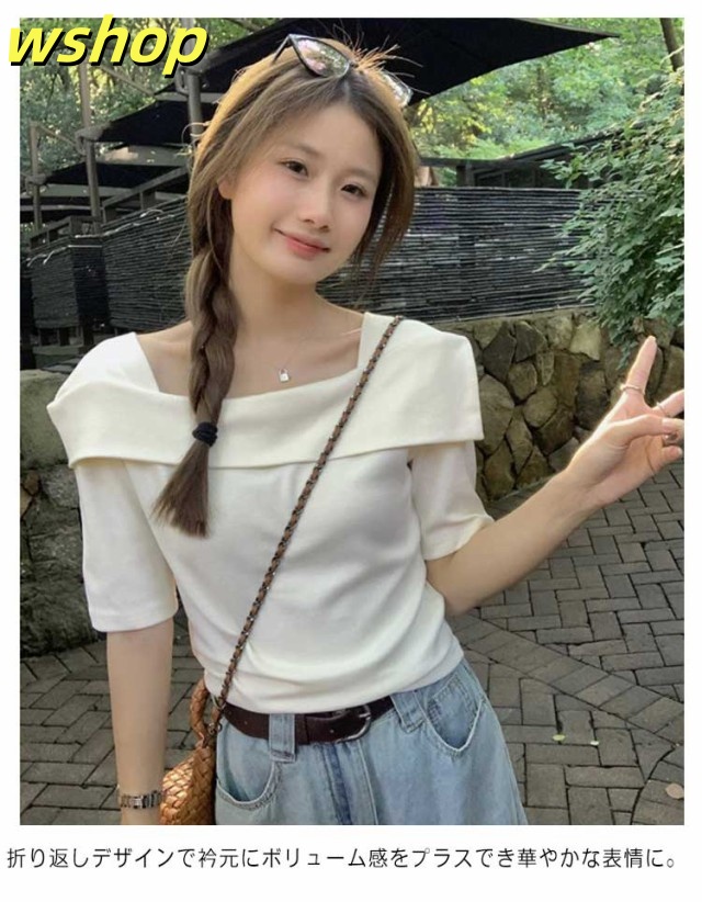 家中時間充実化 多機能デザイン 大人 軽量仕様 折り返し SNS話題 春 トップス フェミニン 今だけ カジュアル 半袖 薄手 レディース 【wshop スクエアカラー 】スクエアネック 夏 Tシャツ カットソー オフショルTシャツ シンプル オフショルダー 数量限定入荷