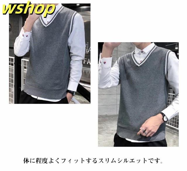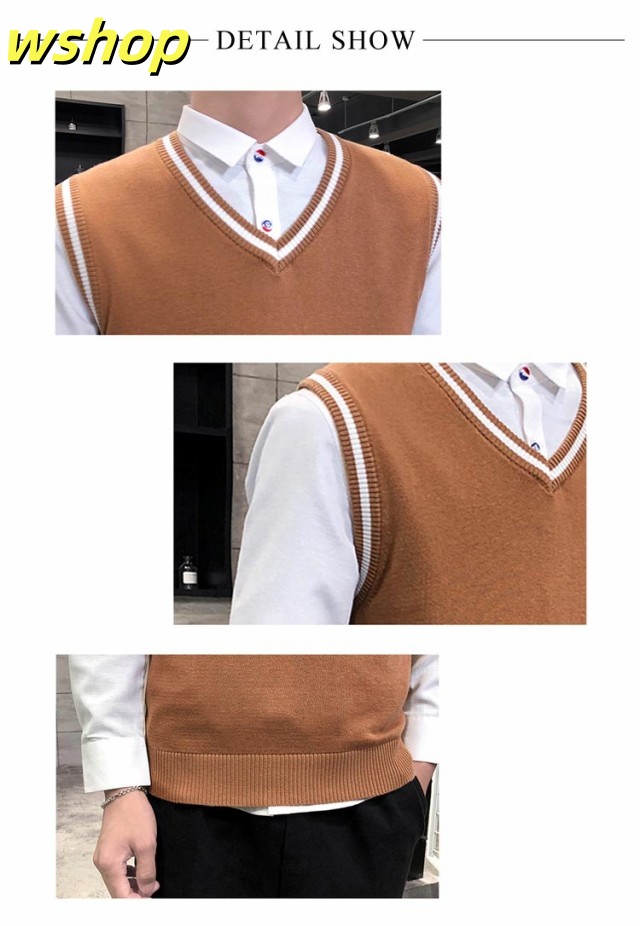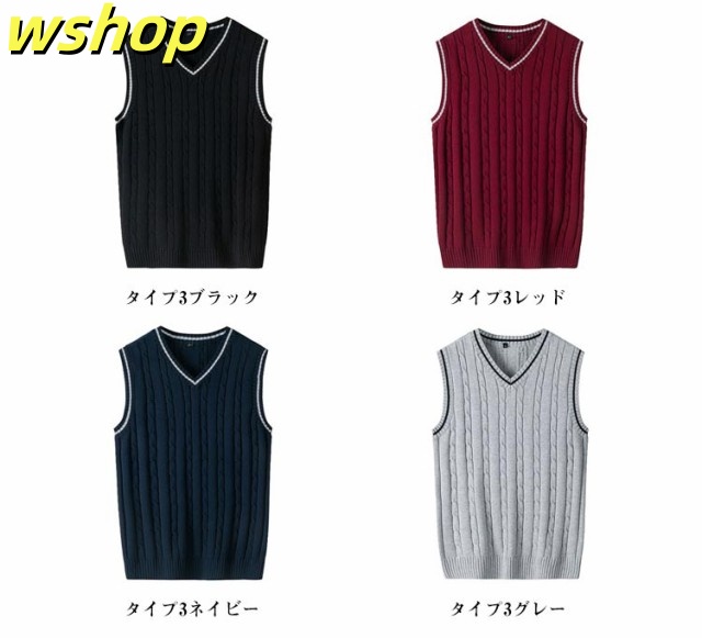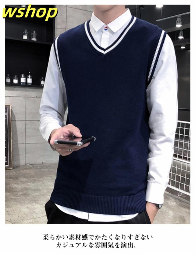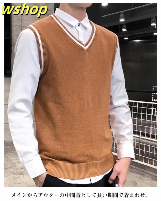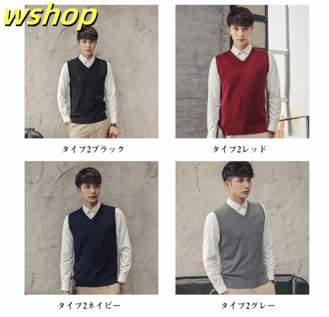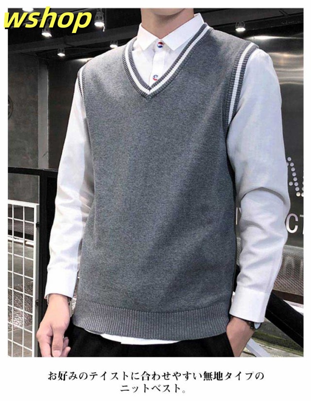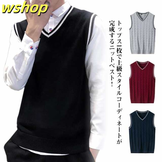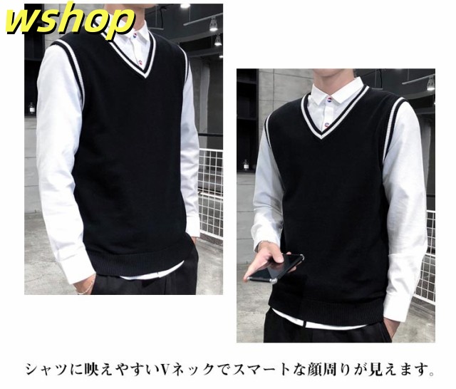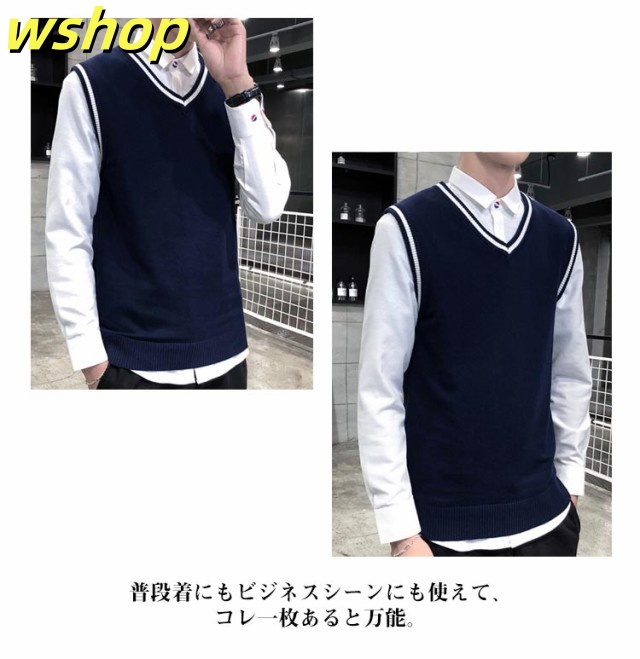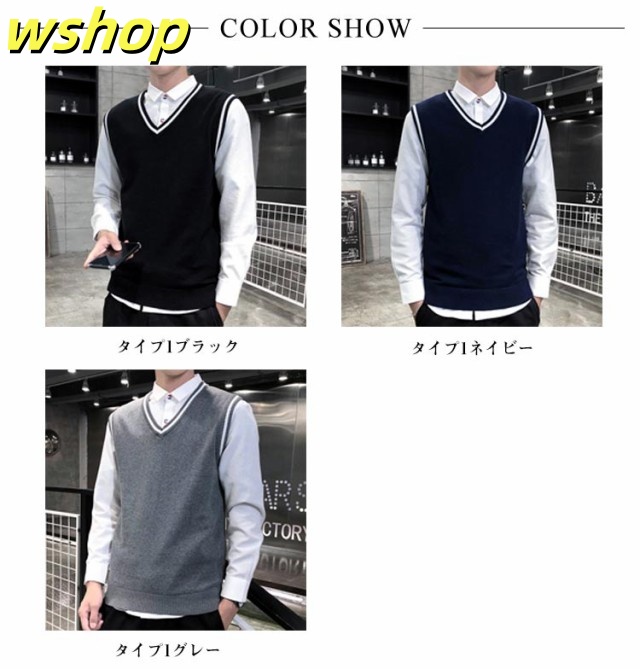 【wshop 】ニットベスト ニットセーター Vネック ノースリーブ リブニット ベスト 大きいサイズ セーター メンズ ニットトップス 色切り替え インナー 重ね着 レイヤード カジュアル コーディネート 無地 定番 普段着 ビジネス 通勤 通学 春新作 送料無料