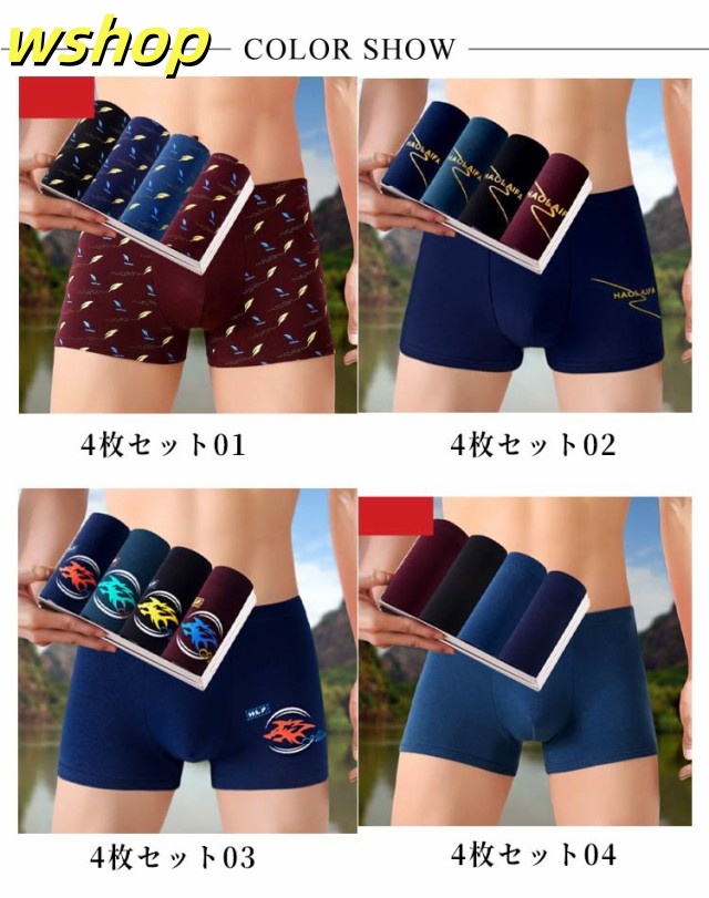 人気急上昇 売上急増中 贈り物 アンダーウェア 綿 パンツ ギフト 送料無料 【wshop 肌着 男性用 メンズ 2XL-5XL ボクサーパンツ ショーツ 下着 ストレッチ 大きいサイズ スポーツ 透气 プレゼント ボクサーフ 】4枚セット インナー コットン 抗菌 送料無料